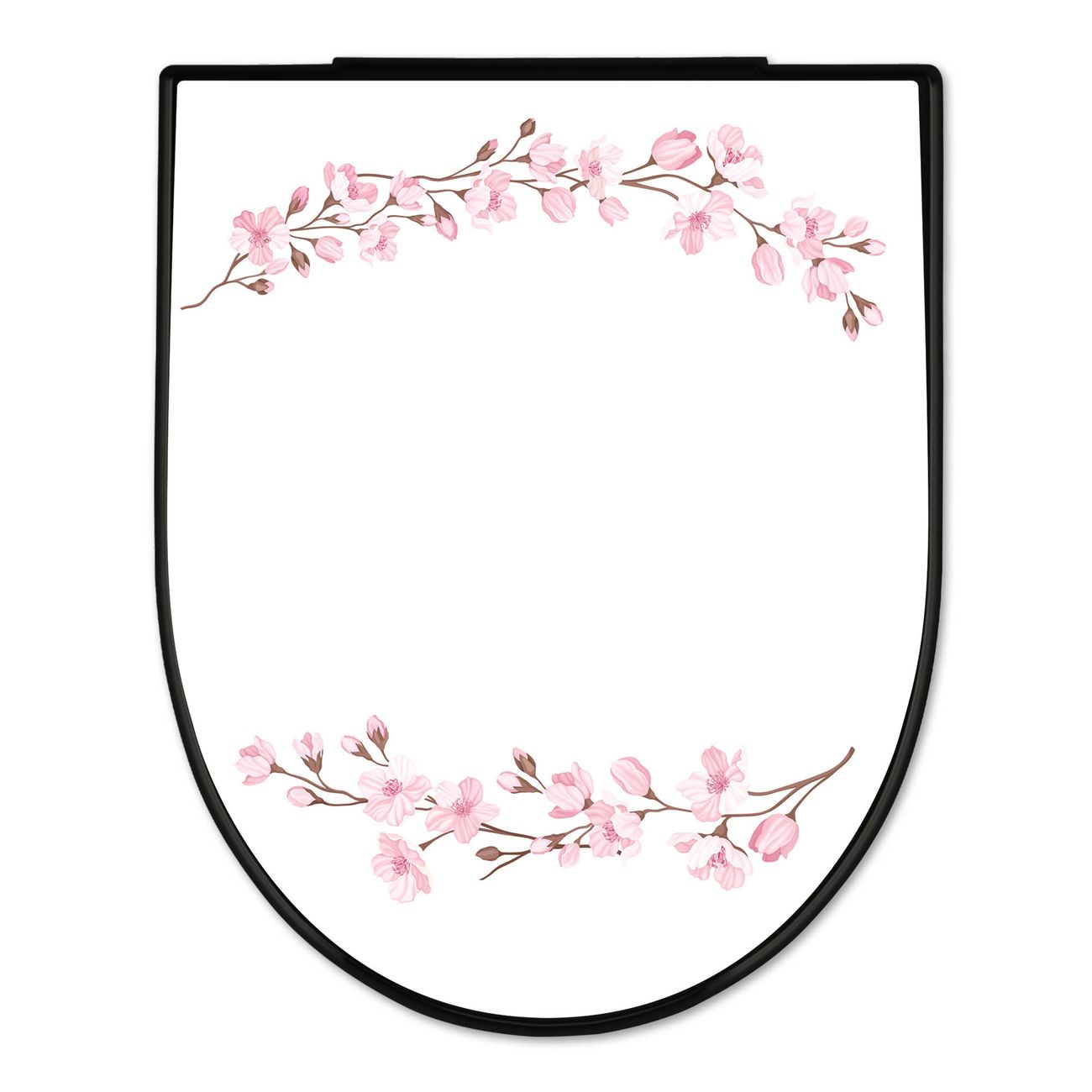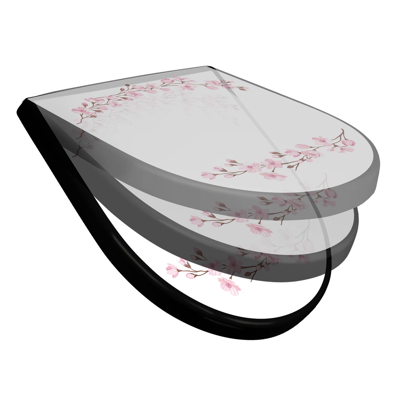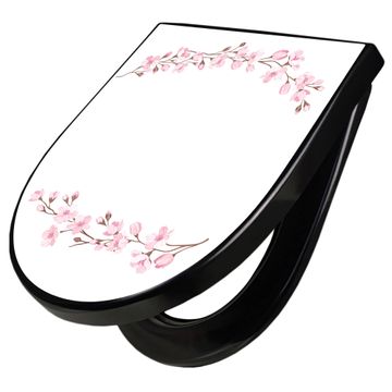 WC Sitz D-Form Schwarz mit Absenkautomatik Motiv Kirschblütenzauber
