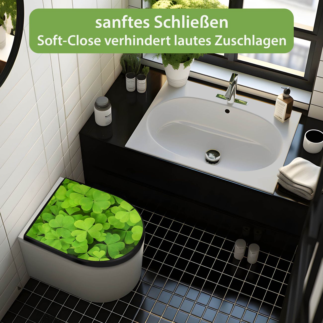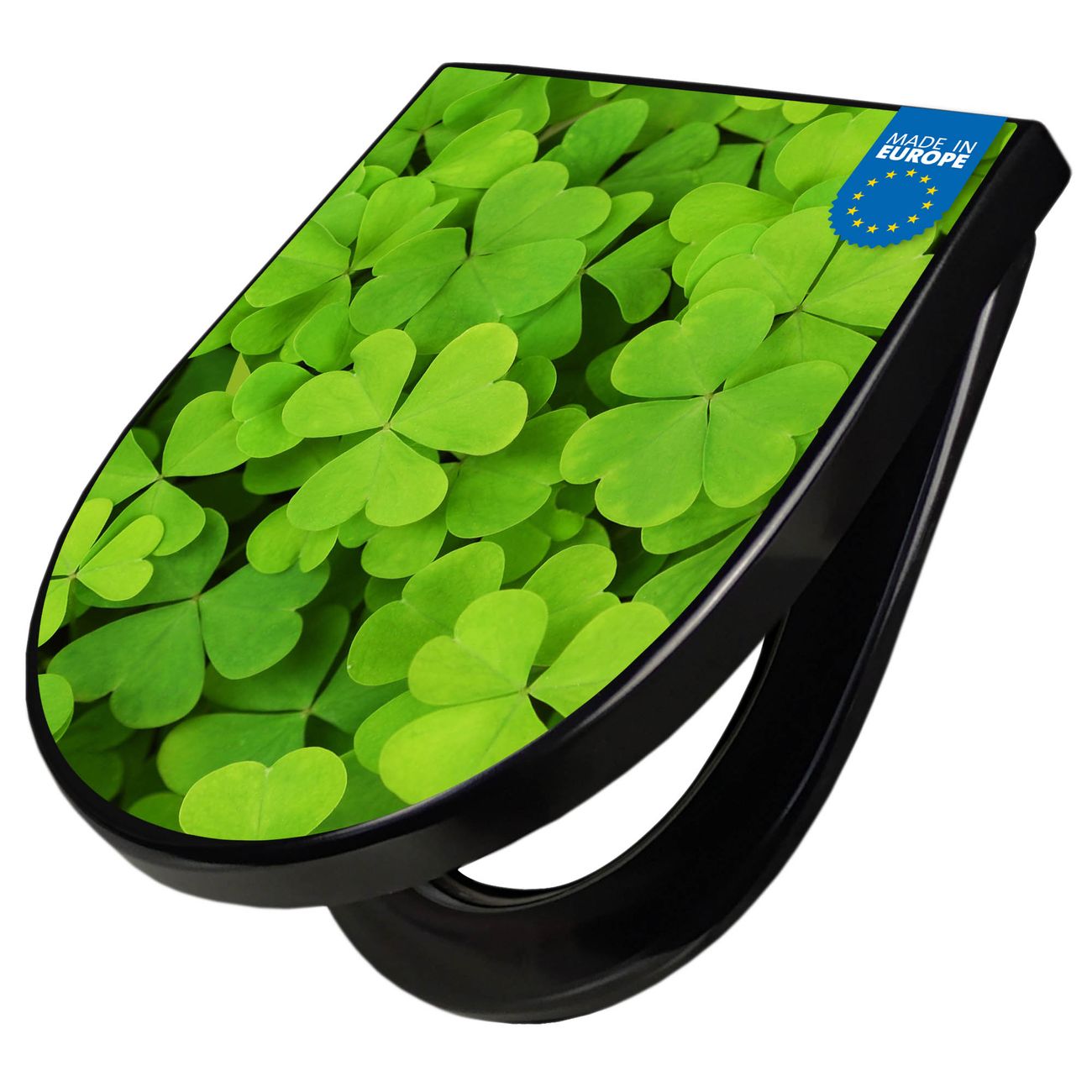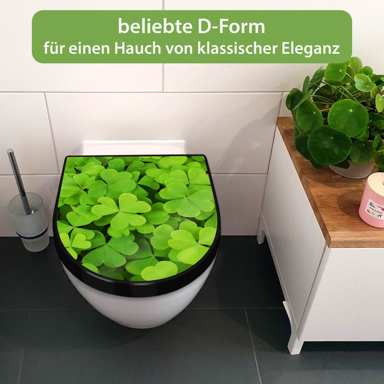 WC Sitz D-Form Schwarz mit Absenkautomatik Motiv Klee