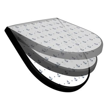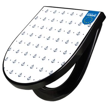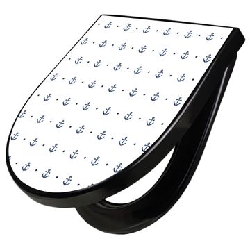 WC Sitz D-Form Schwarz mit Absenkautomatik Motiv Kleine Anker