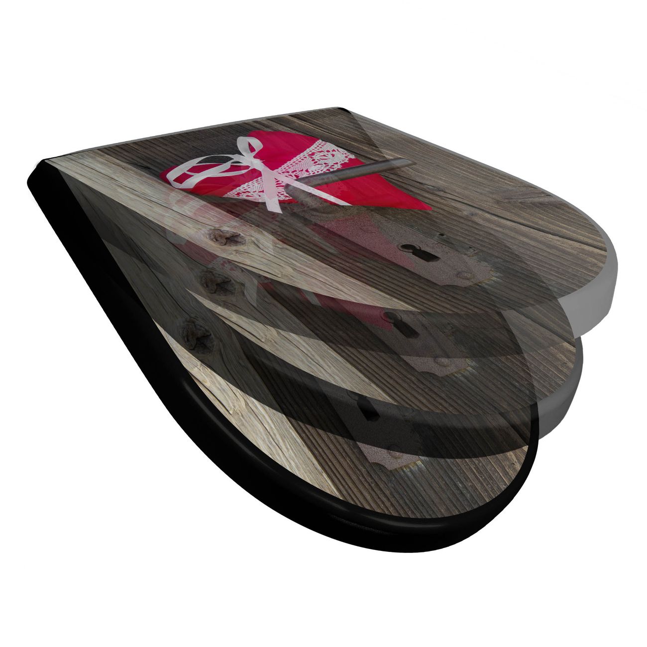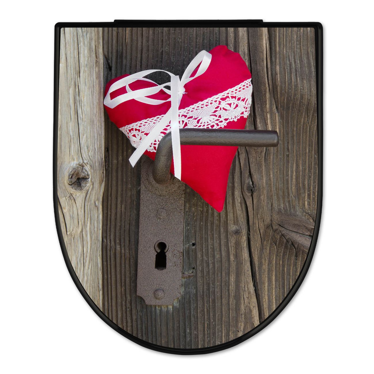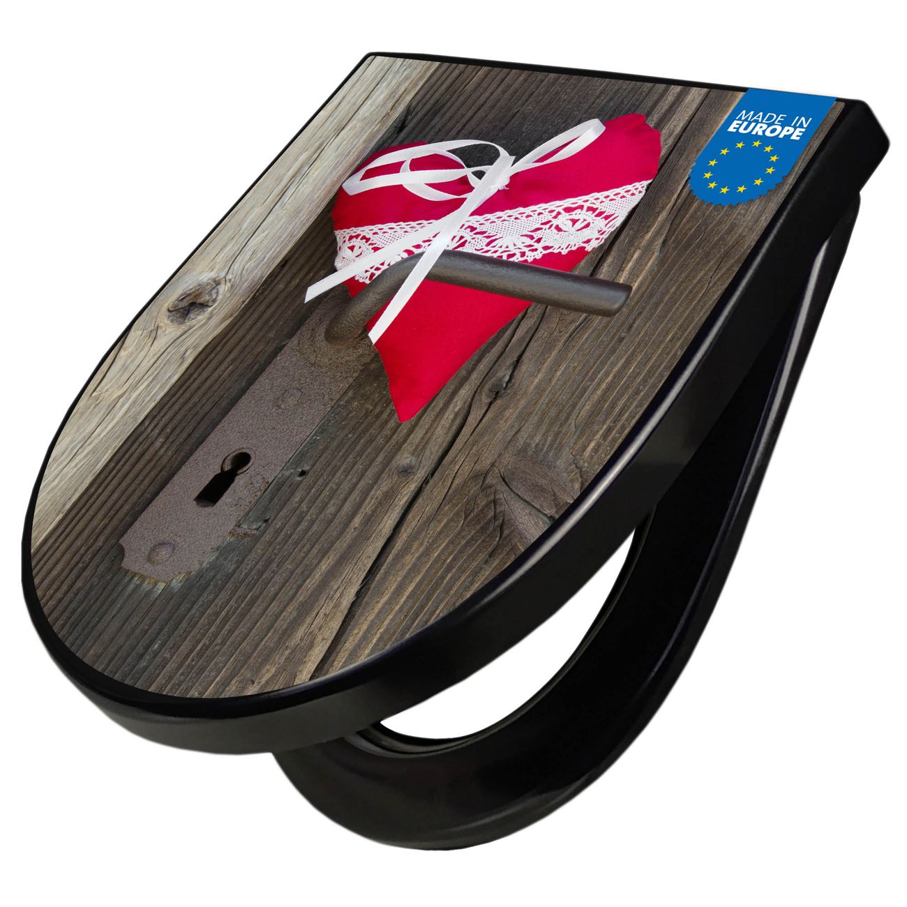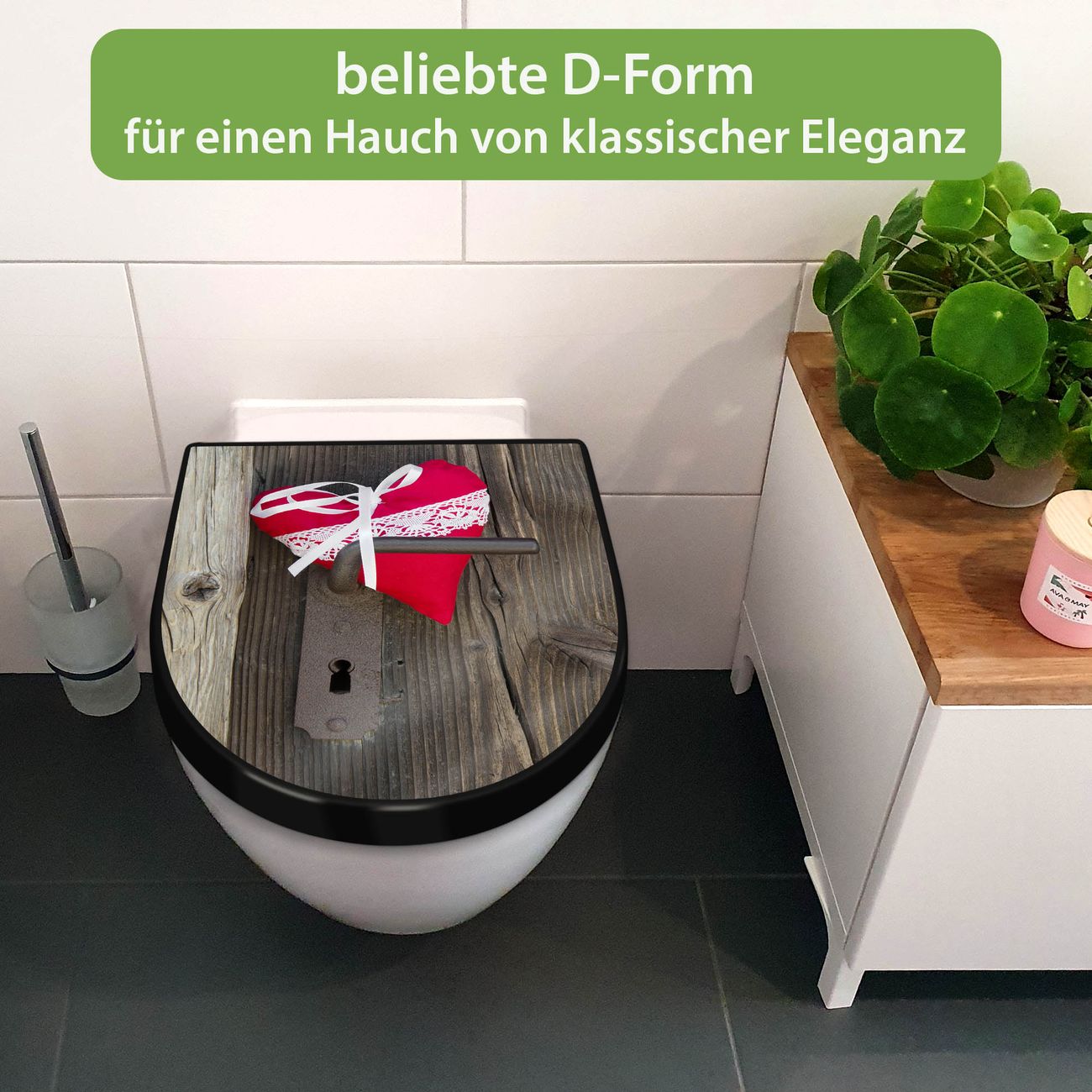 WC Sitz D-Form Schwarz mit Absenkautomatik Motiv Knock On Your Door
