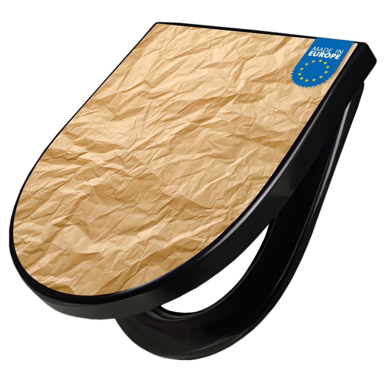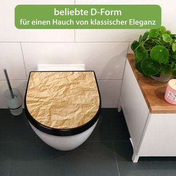 WC Sitz D-Form Schwarz mit Absenkautomatik Motiv Knüllpapier