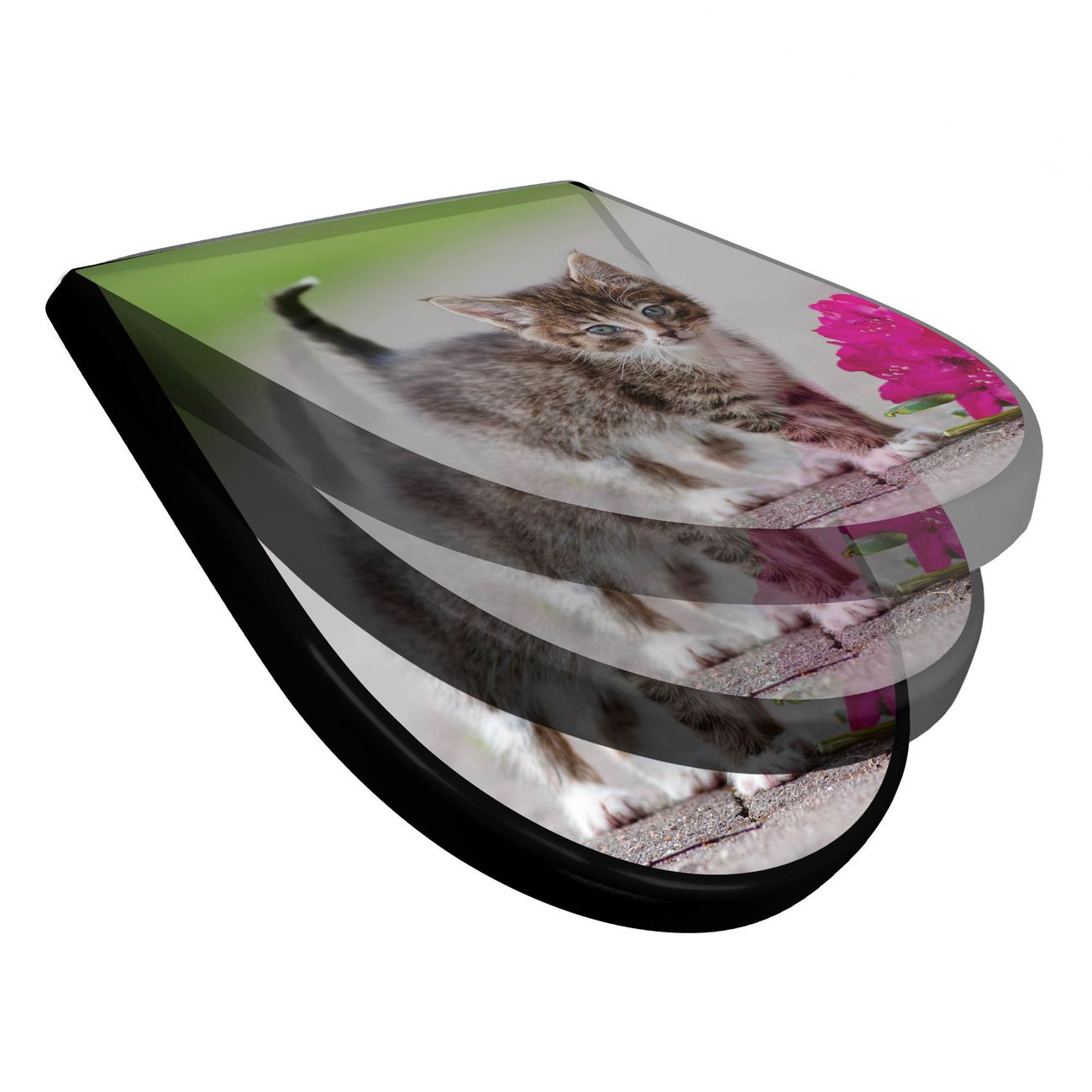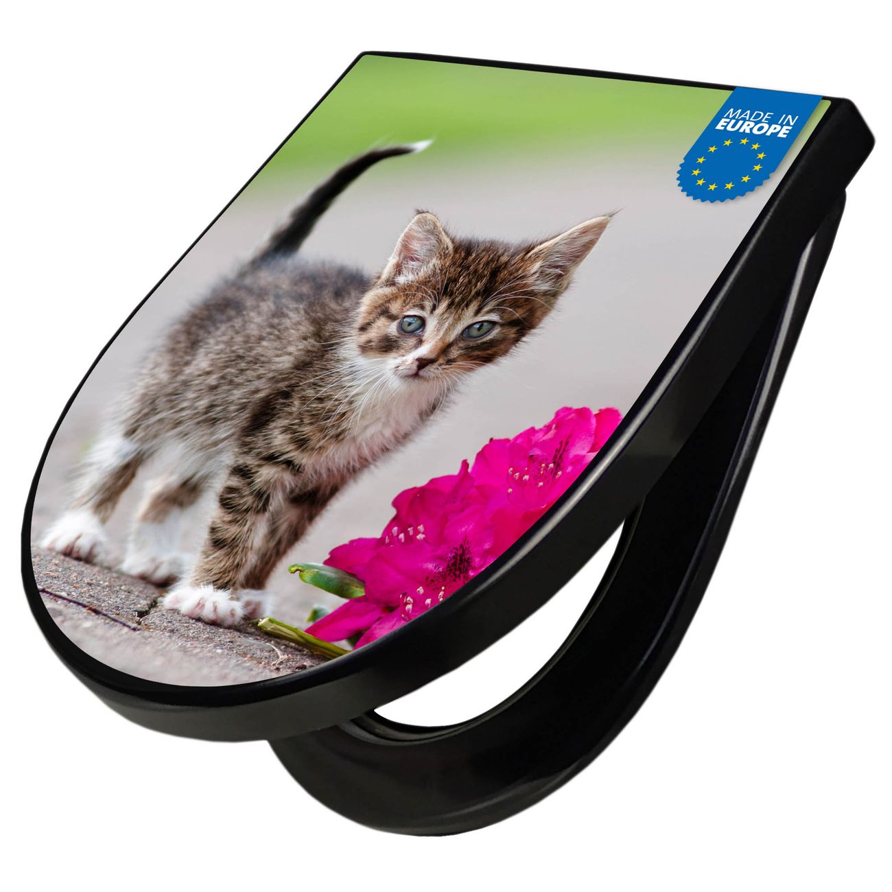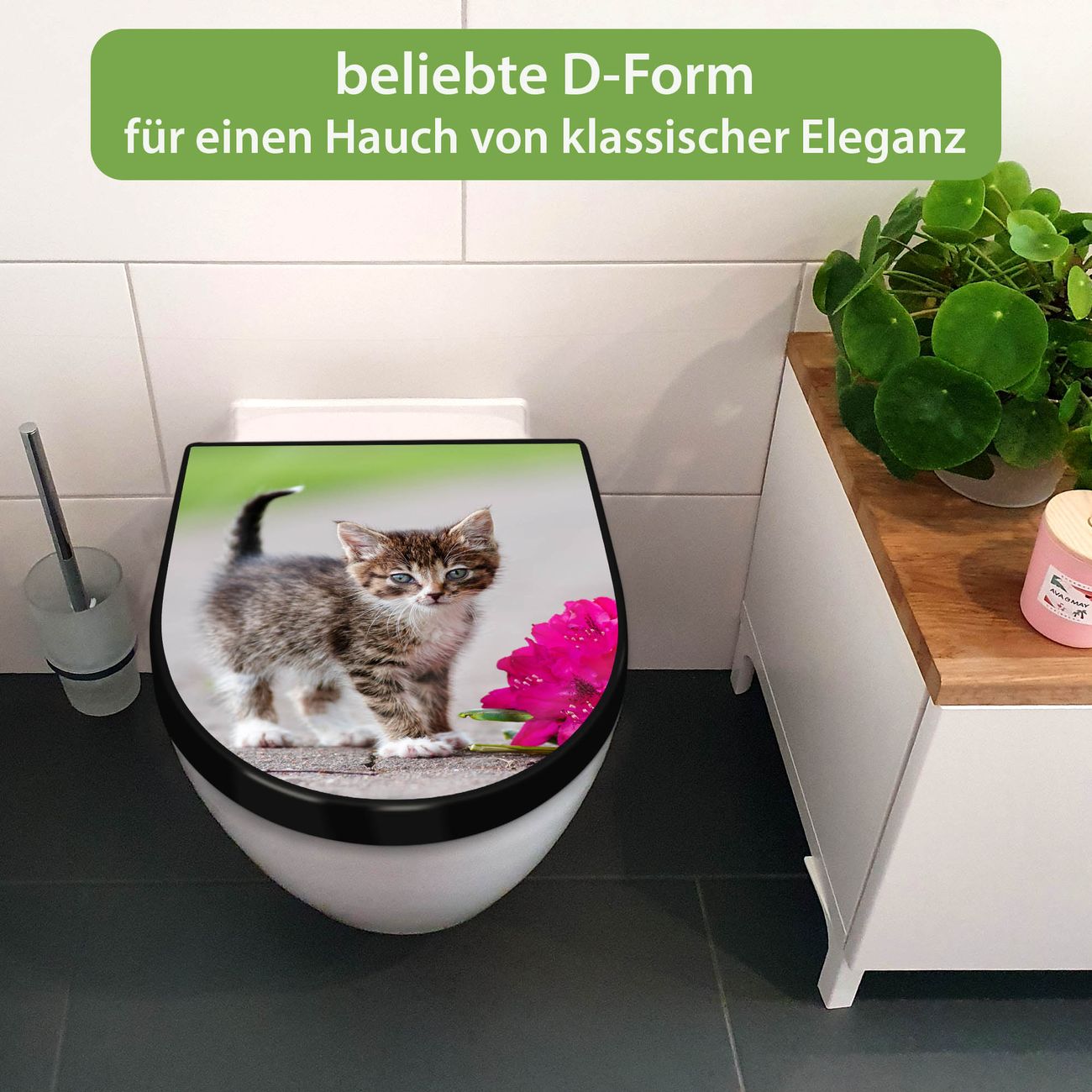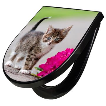 WC Sitz D-Form Schwarz mit Absenkautomatik Motiv Knut