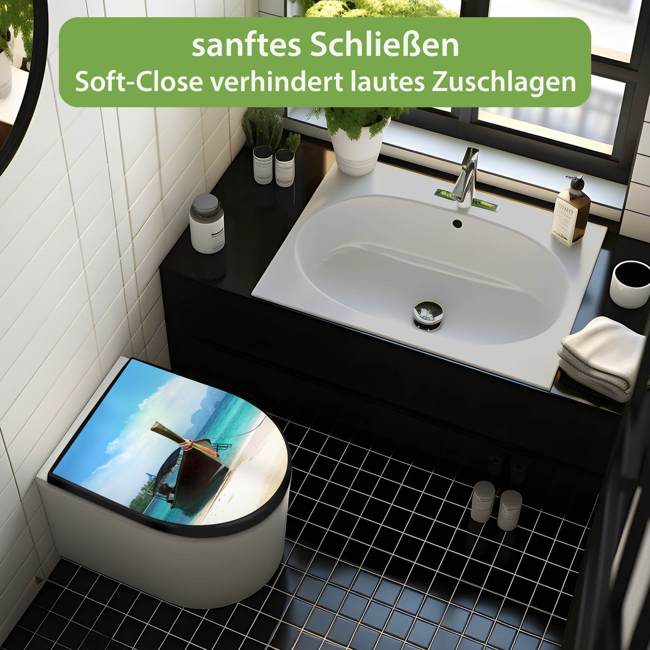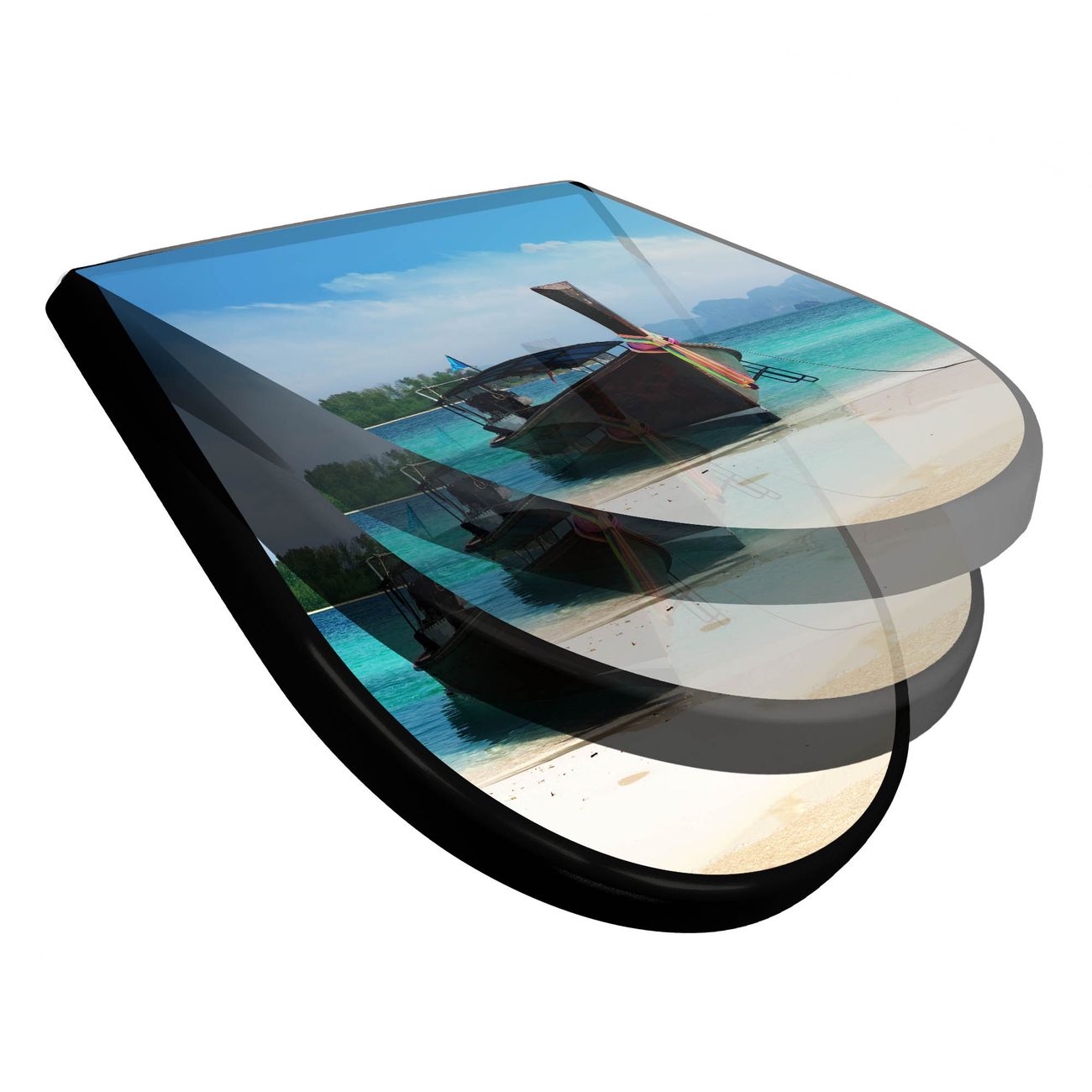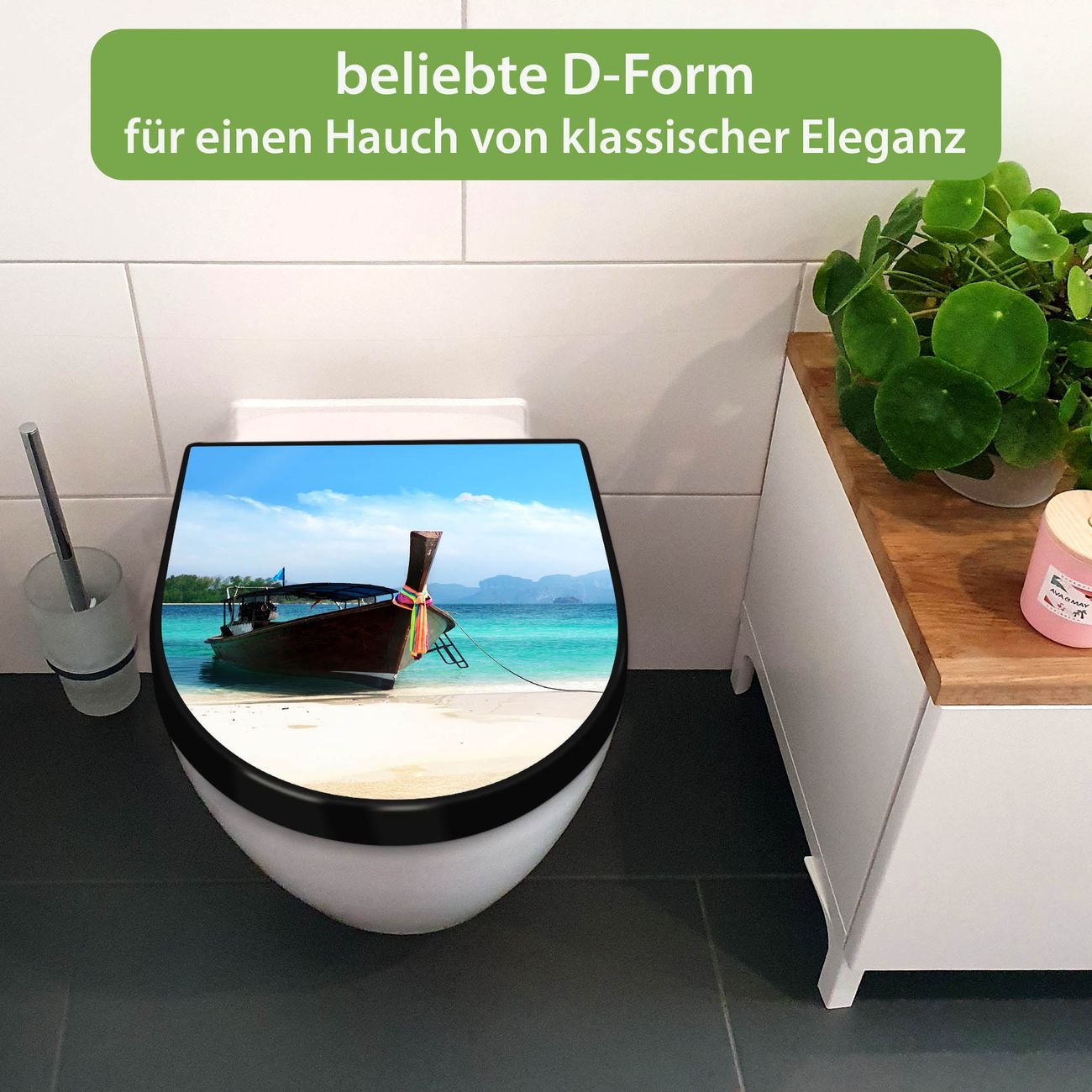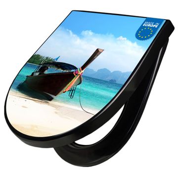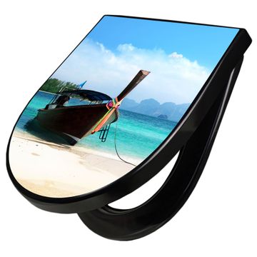 WC Sitz D-Form Schwarz mit Absenkautomatik Motiv Koh Poda