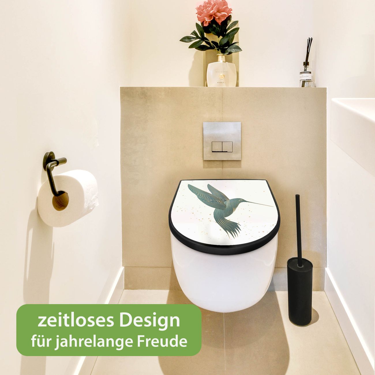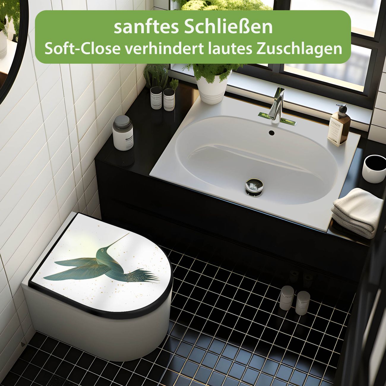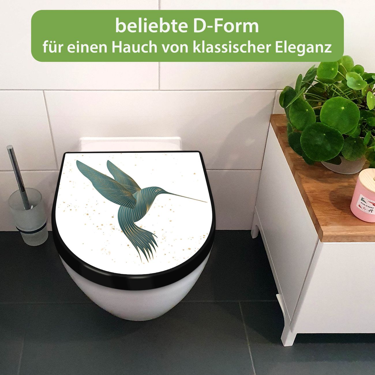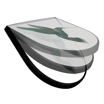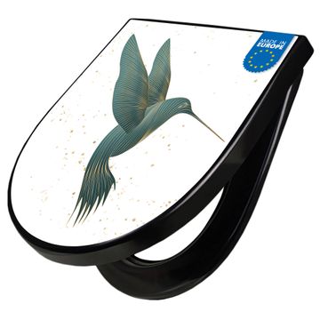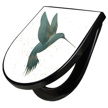 WC Sitz D-Form Schwarz mit Absenkautomatik Motiv Kolibri 5