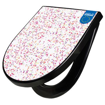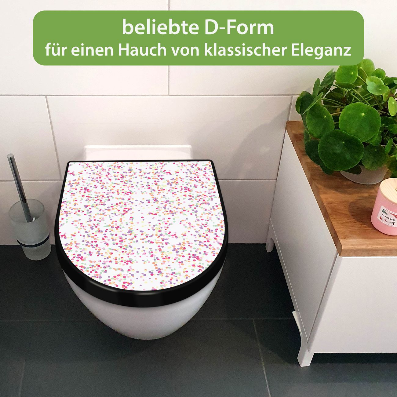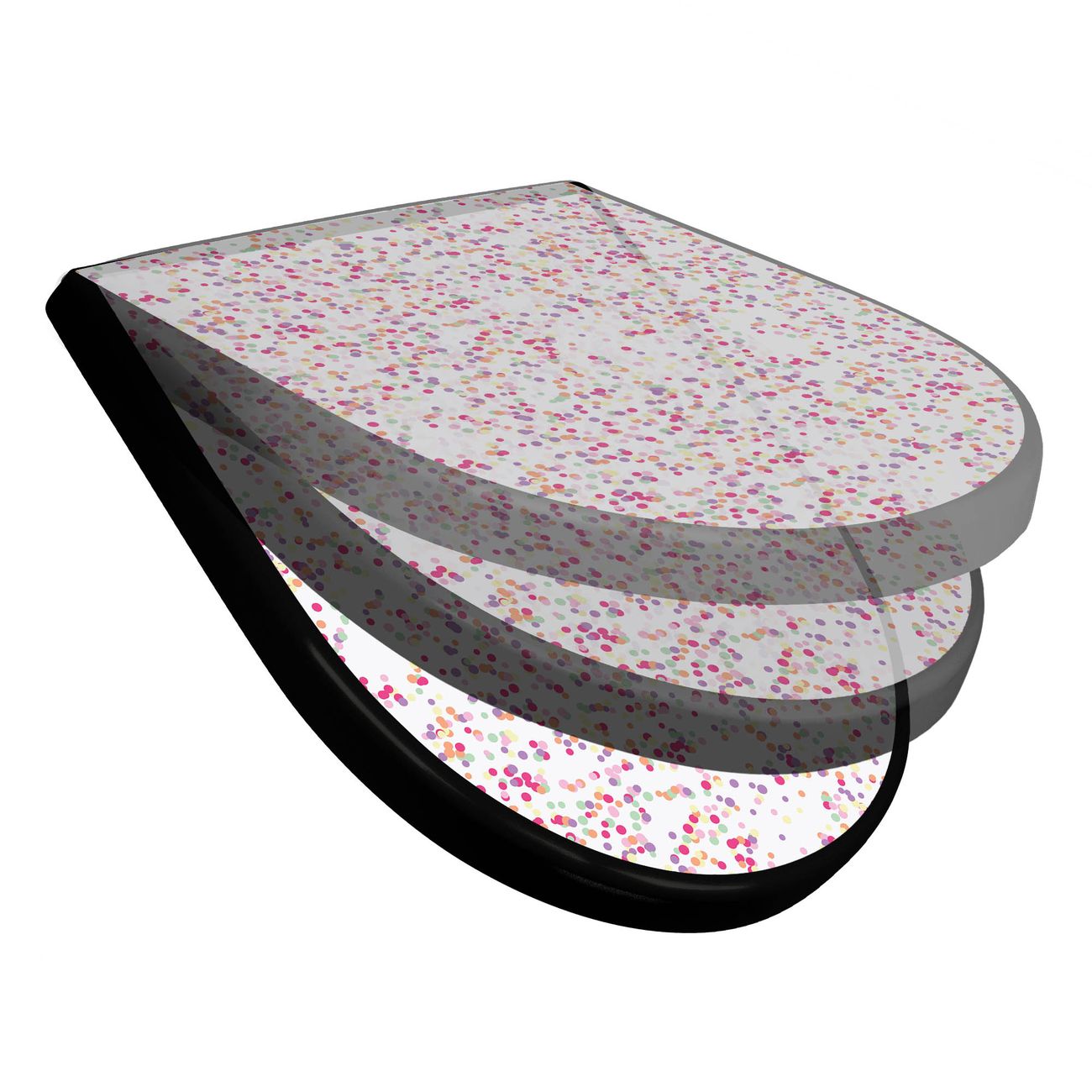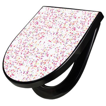 WC Sitz D-Form Schwarz mit Absenkautomatik Motiv Konfettiregen