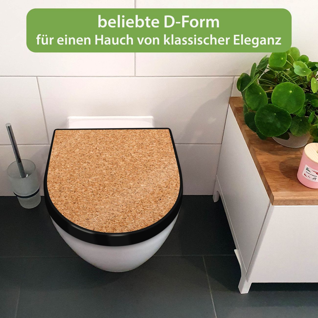 WC Sitz D-Form Schwarz mit Absenkautomatik Motiv Kork