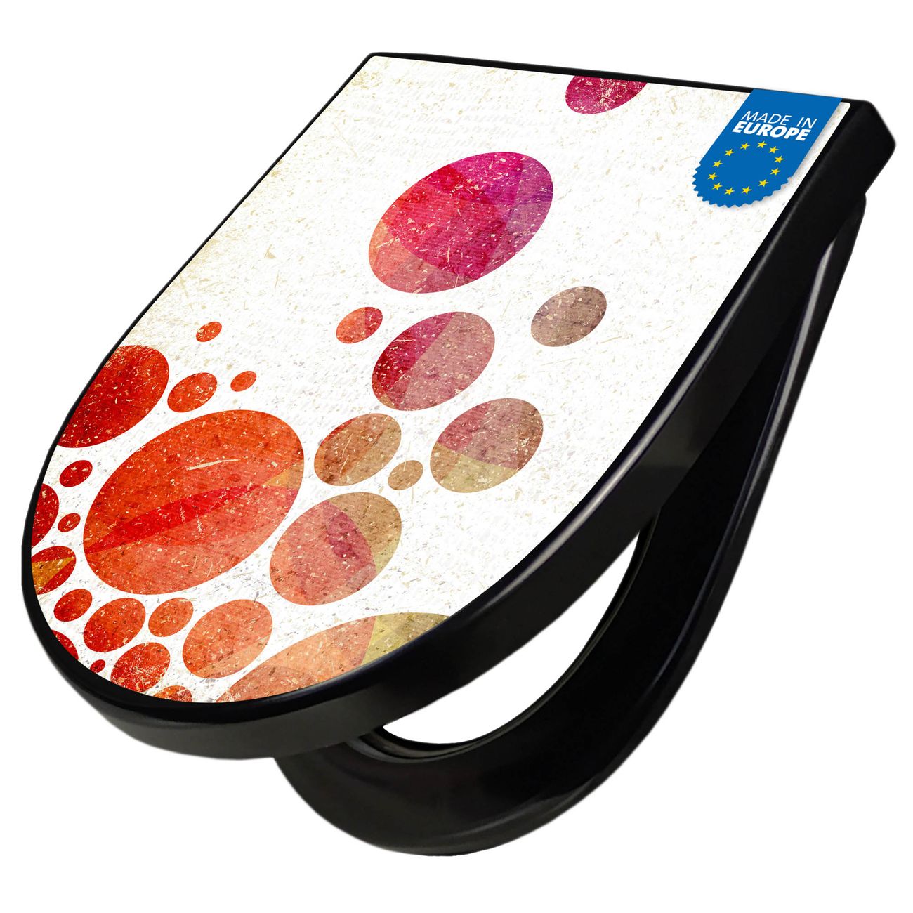Der WC-Deckel wird in Europa gefertigt und im Herzen von Sachsen für Sie mit dem gewünschten Motiv veredelt. Die hierfür verwendete Folie ist lösungsmittelfrei und schutzlaminiert.