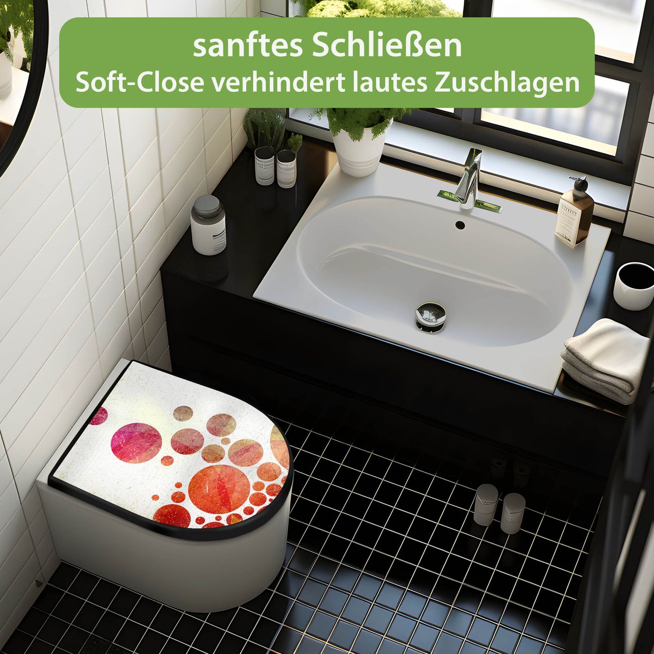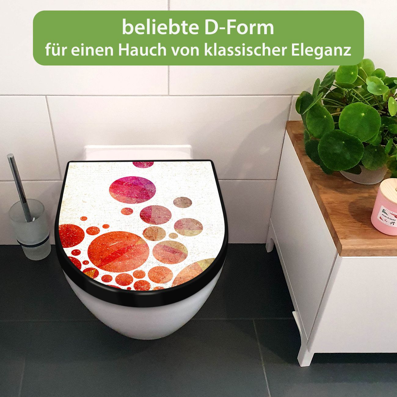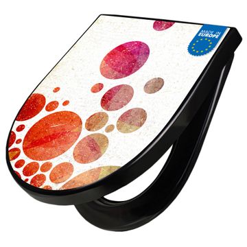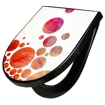 WC Sitz D-Form Schwarz mit Absenkautomatik Motiv Kreise