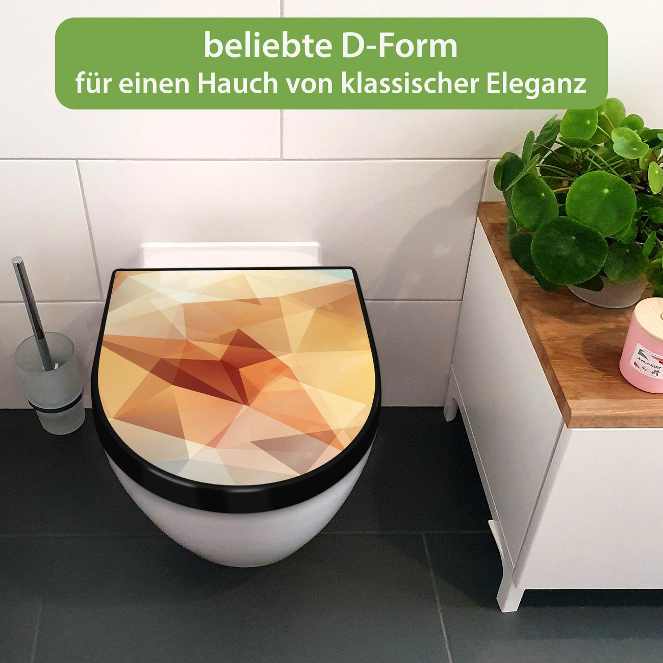 Der Toilettensitz mit Softclose Absenkautomatik besteht aus hochwertigem Duroplast. Ein Material, dass robust, angenehm in der Haptik und hygienisch ist. Die Montage erfolgt nach Bedarf von oben oder unten und ist kinderleicht.