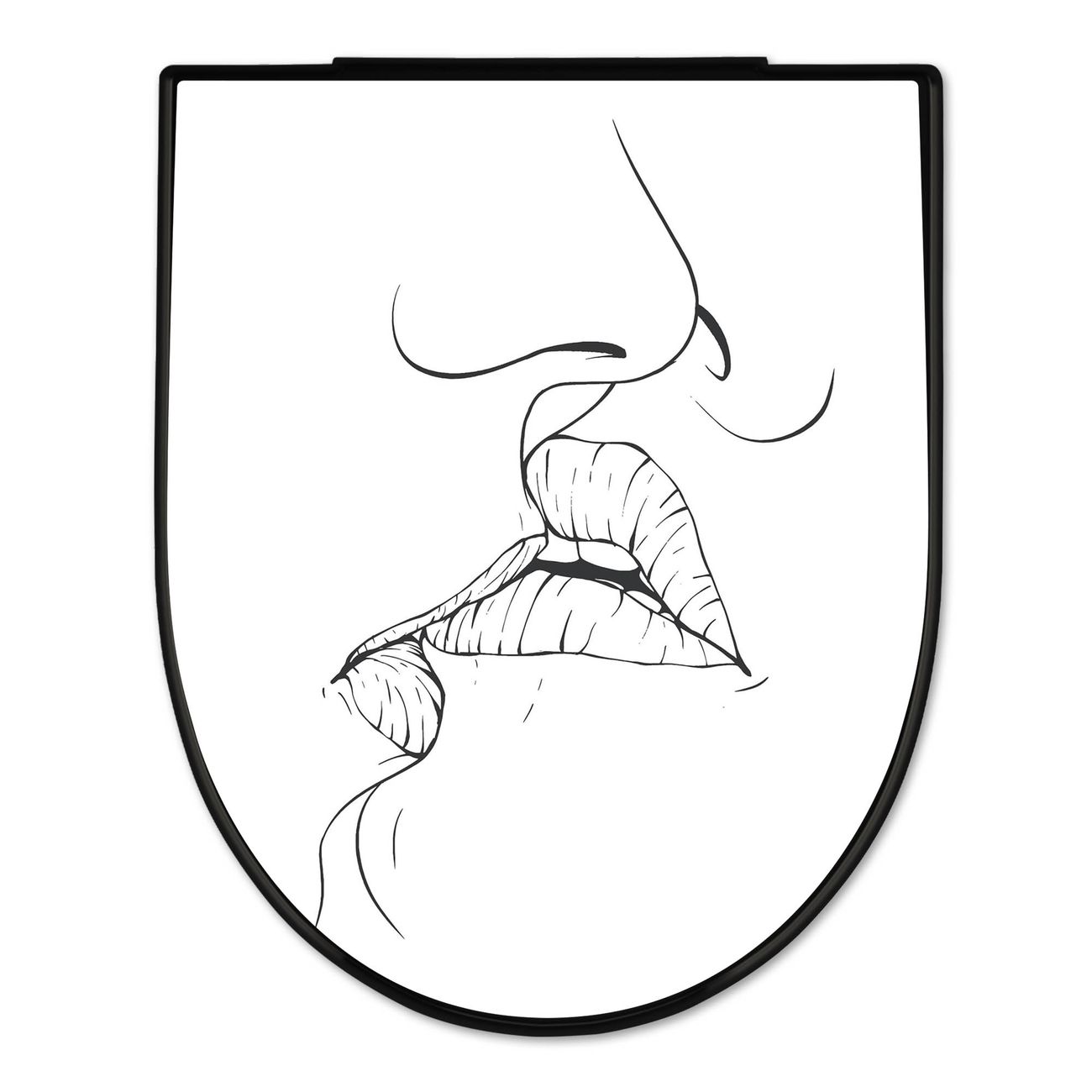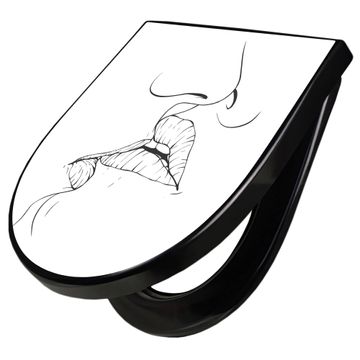 WC Sitz D-Form Schwarz mit Absenkautomatik Motiv Künstlerische Lippen Lineart