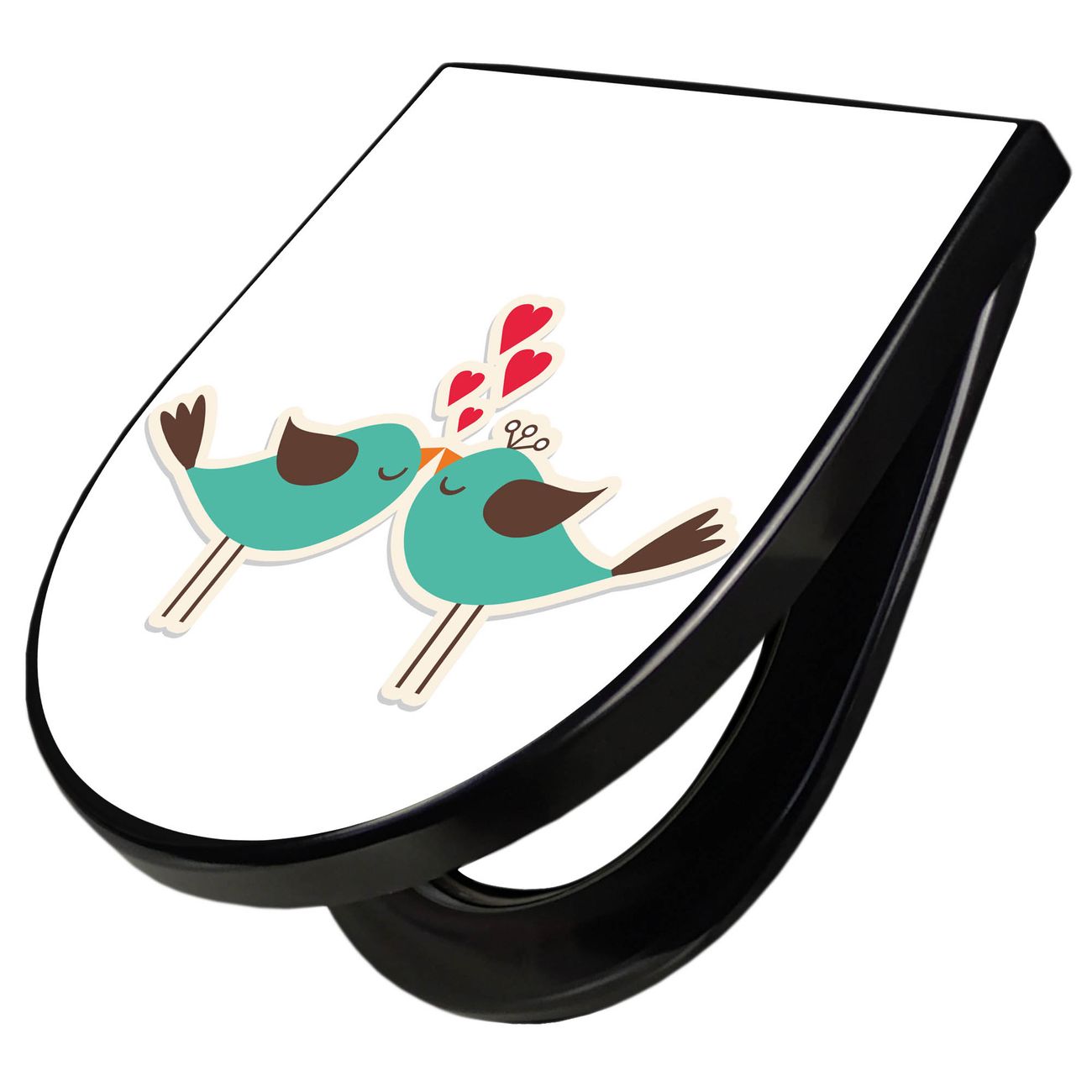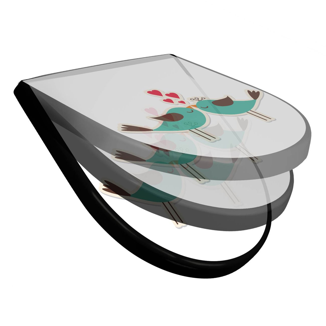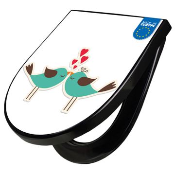 WC Sitz D-Form Schwarz mit Absenkautomatik Motiv Küsschen