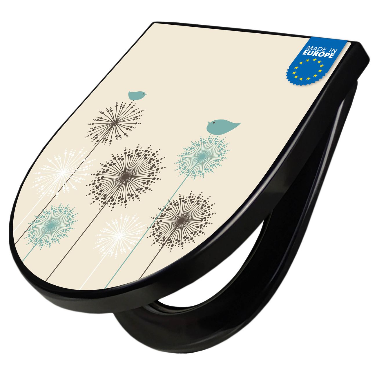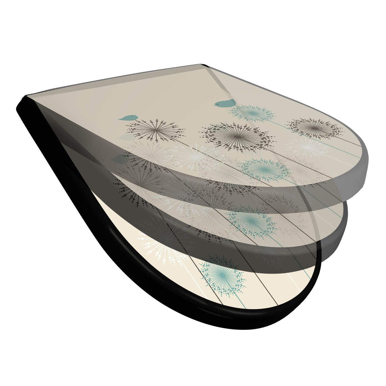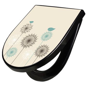WC Sitz D-Form Schwarz mit Absenkautomatik Motiv Kugelfontänen