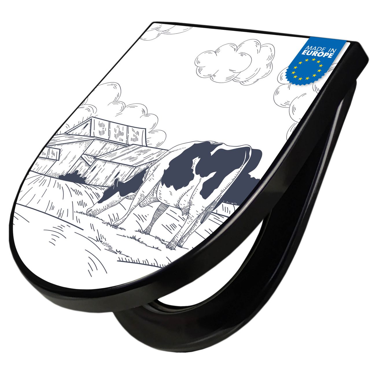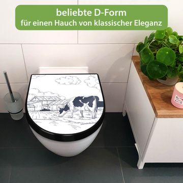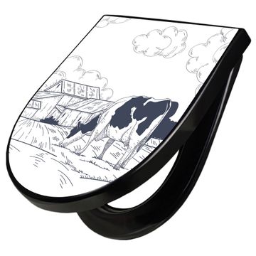 WC Sitz D-Form Schwarz mit Absenkautomatik Motiv Ländliche Idylle mit Kuh