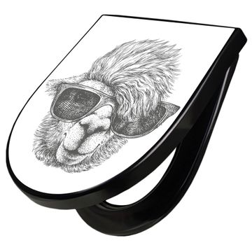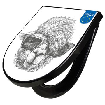 WC Sitz D-Form Schwarz mit Absenkautomatik Motiv Lama 2