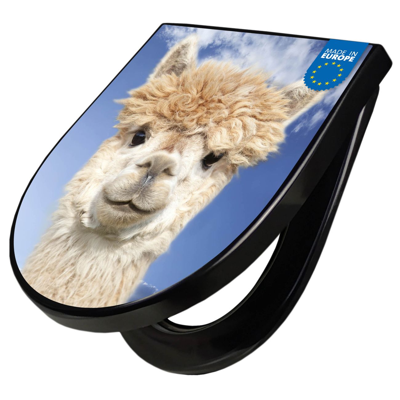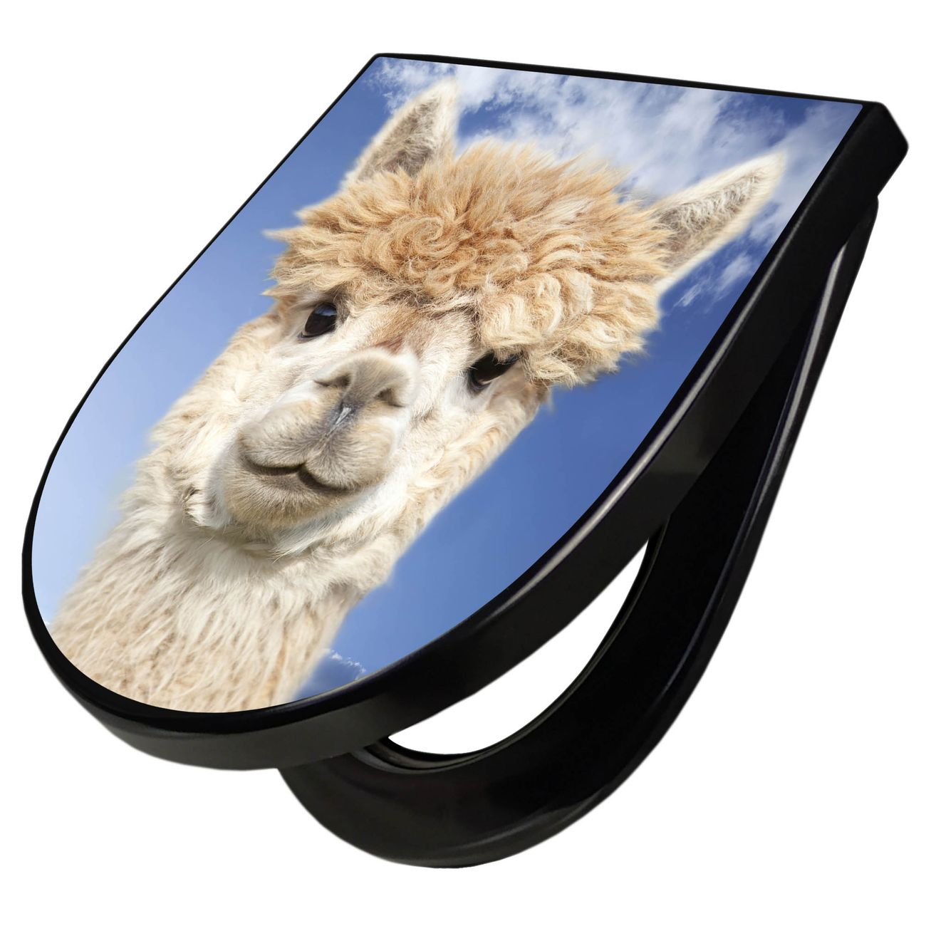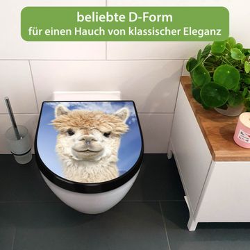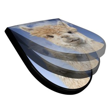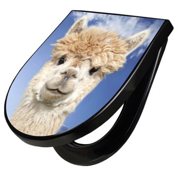 WC Sitz D-Form Schwarz mit Absenkautomatik Motiv Lama