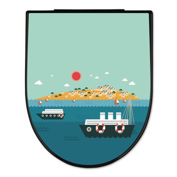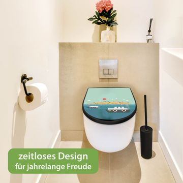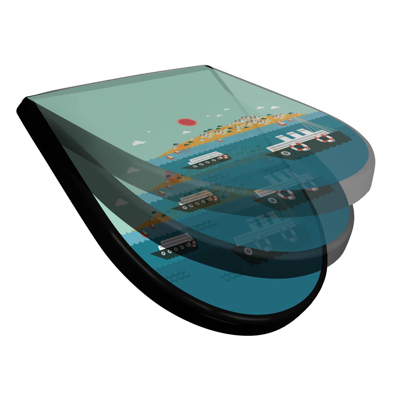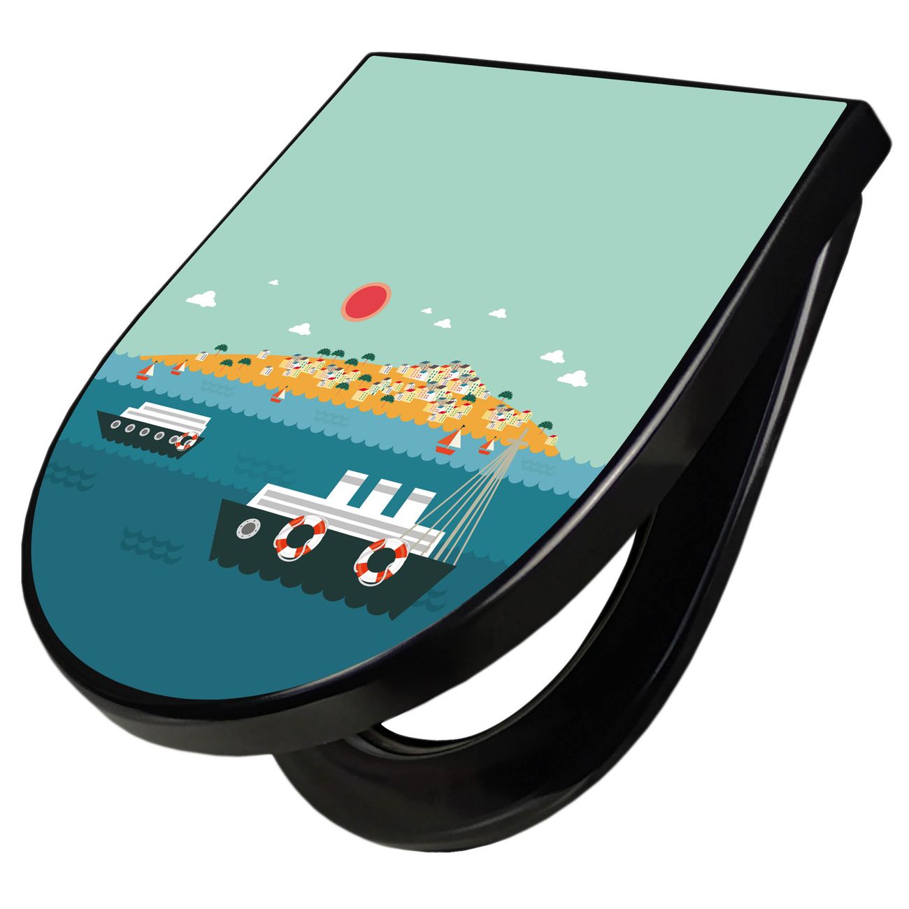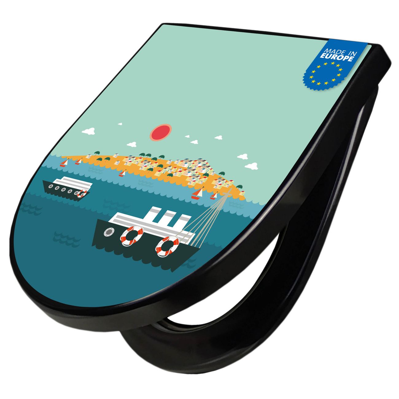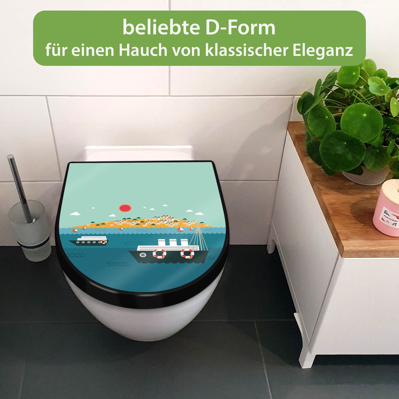 WC Sitz D-Form Schwarz mit Absenkautomatik Motiv Land in Sicht