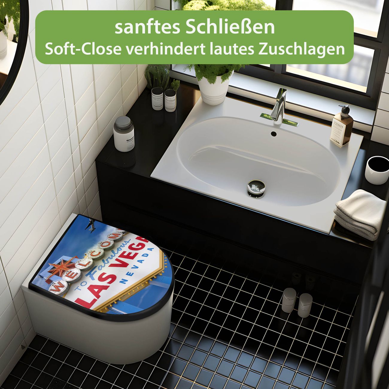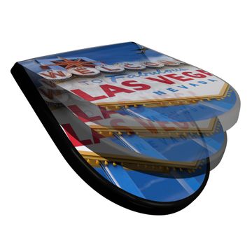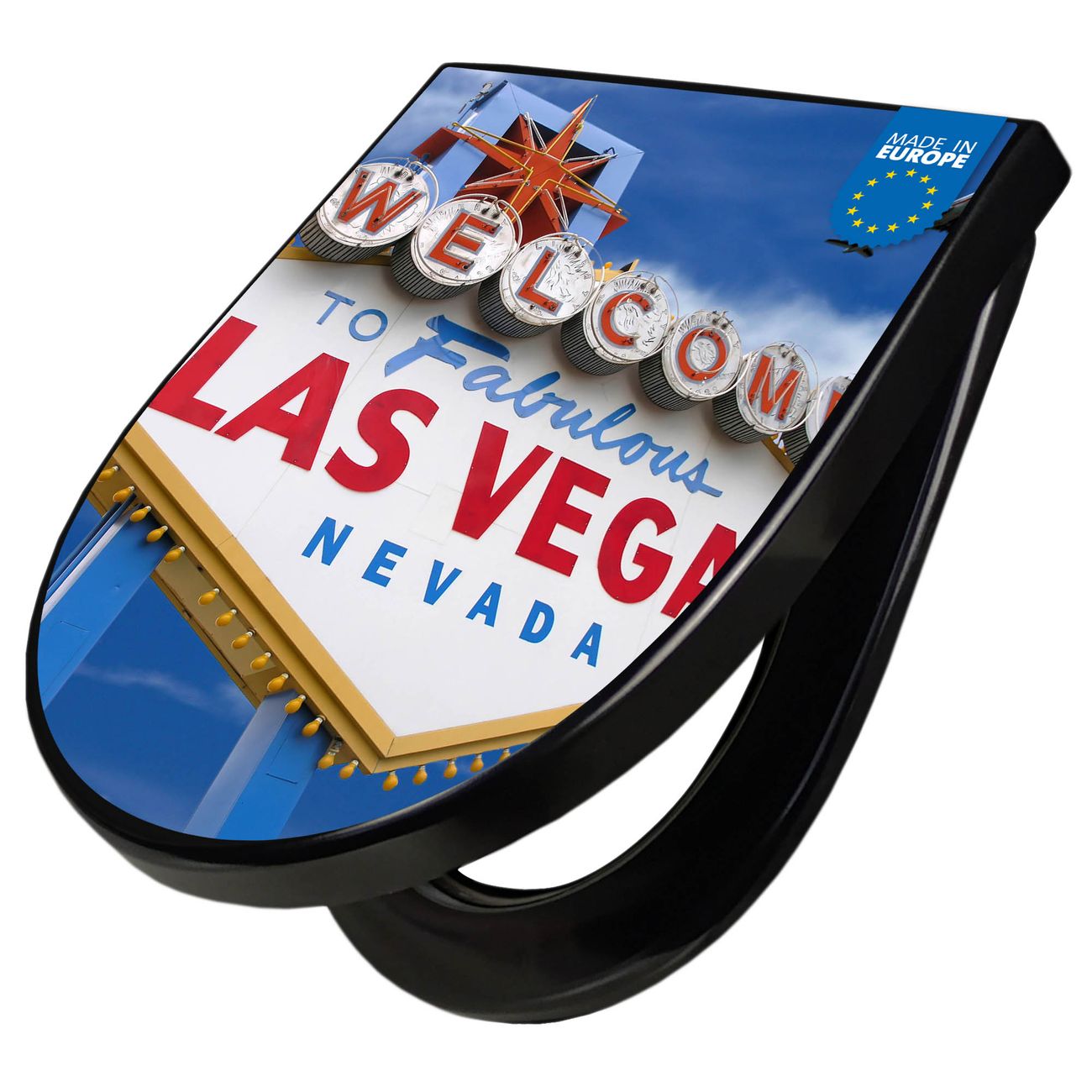 WC Sitz D-Form Schwarz mit Absenkautomatik Motiv Las Vegas
