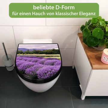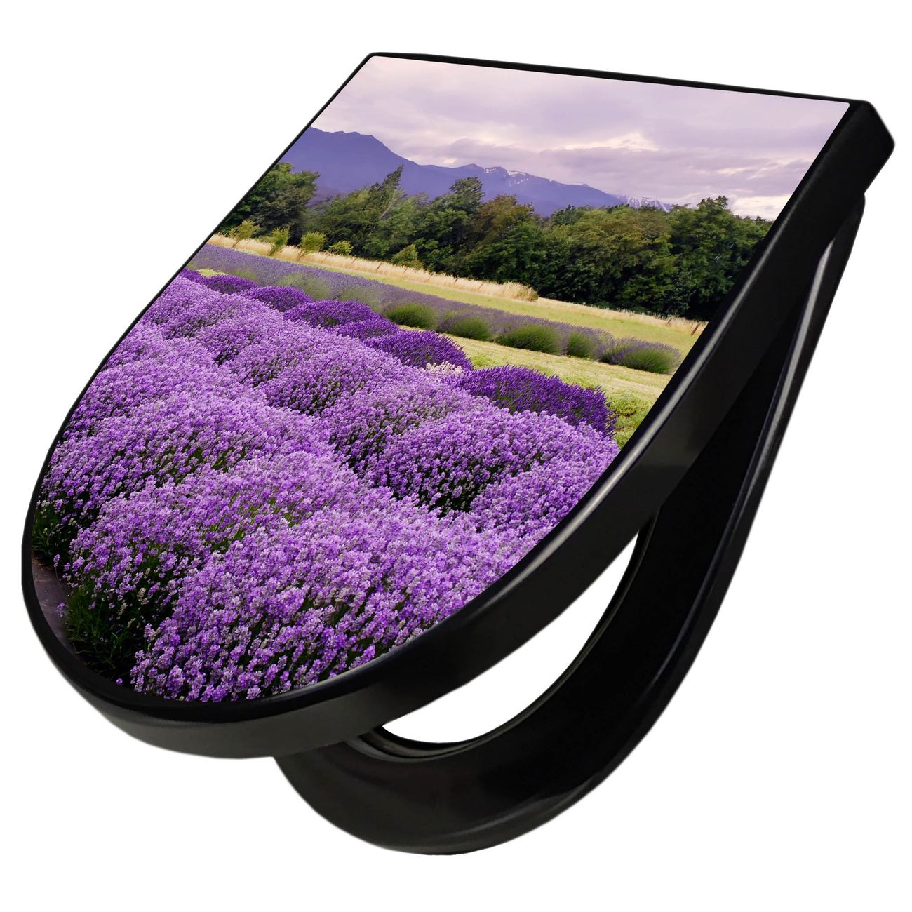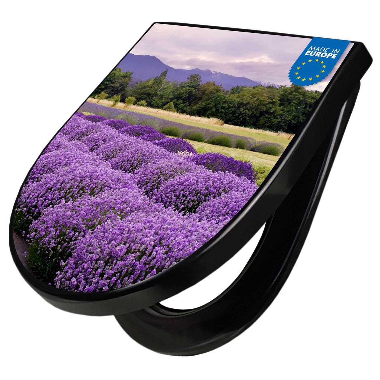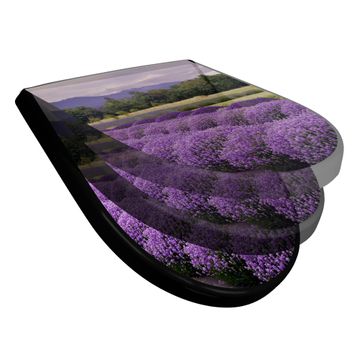 WC Sitz D-Form Schwarz mit Absenkautomatik Motiv Lavendel 1