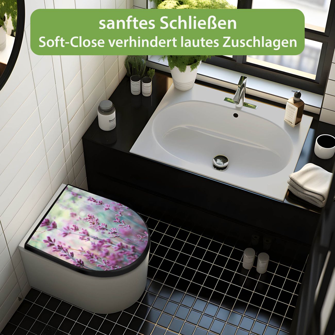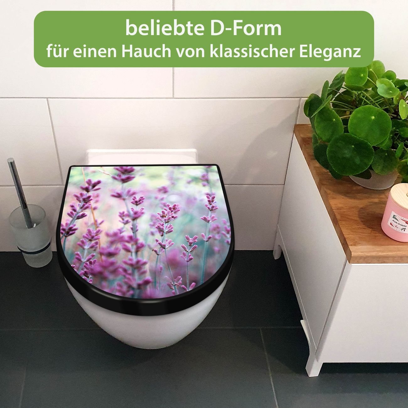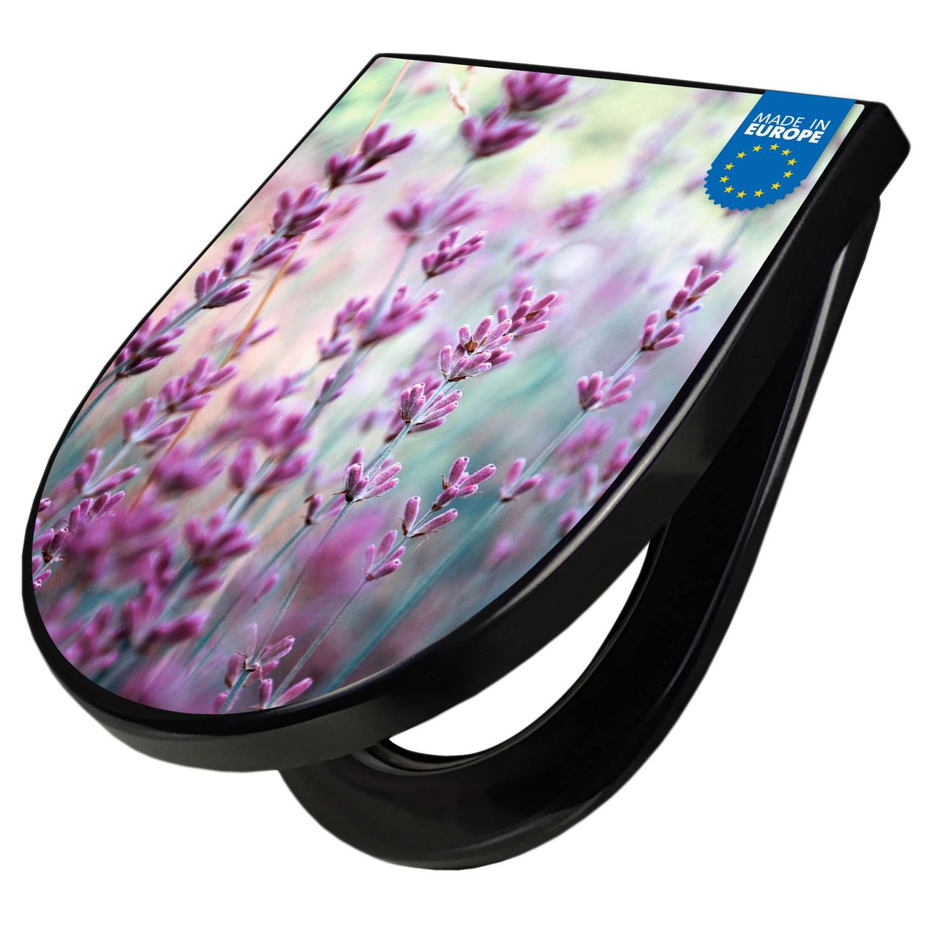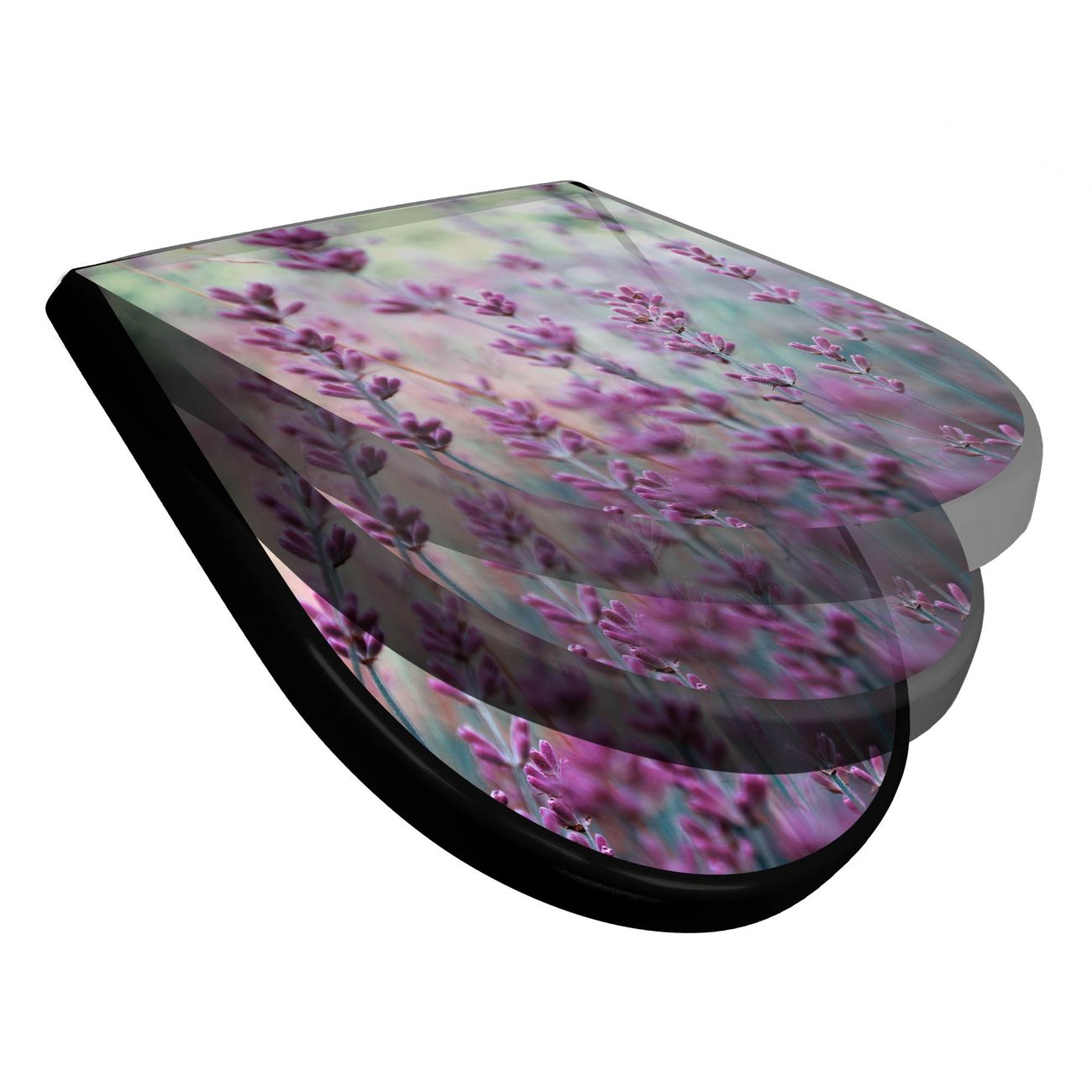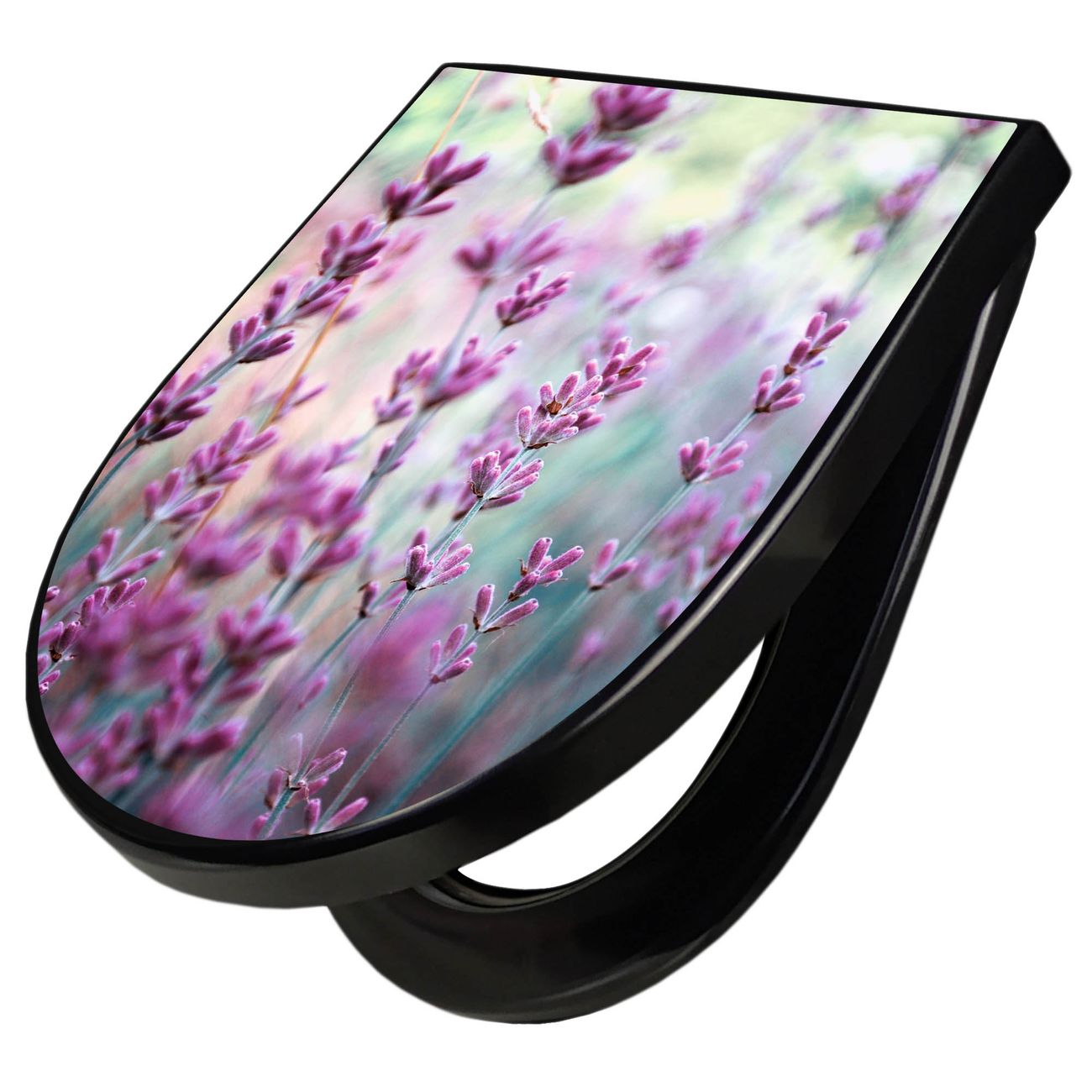WC Sitz D-Form Schwarz mit Absenkautomatik Motiv Lavendel 2