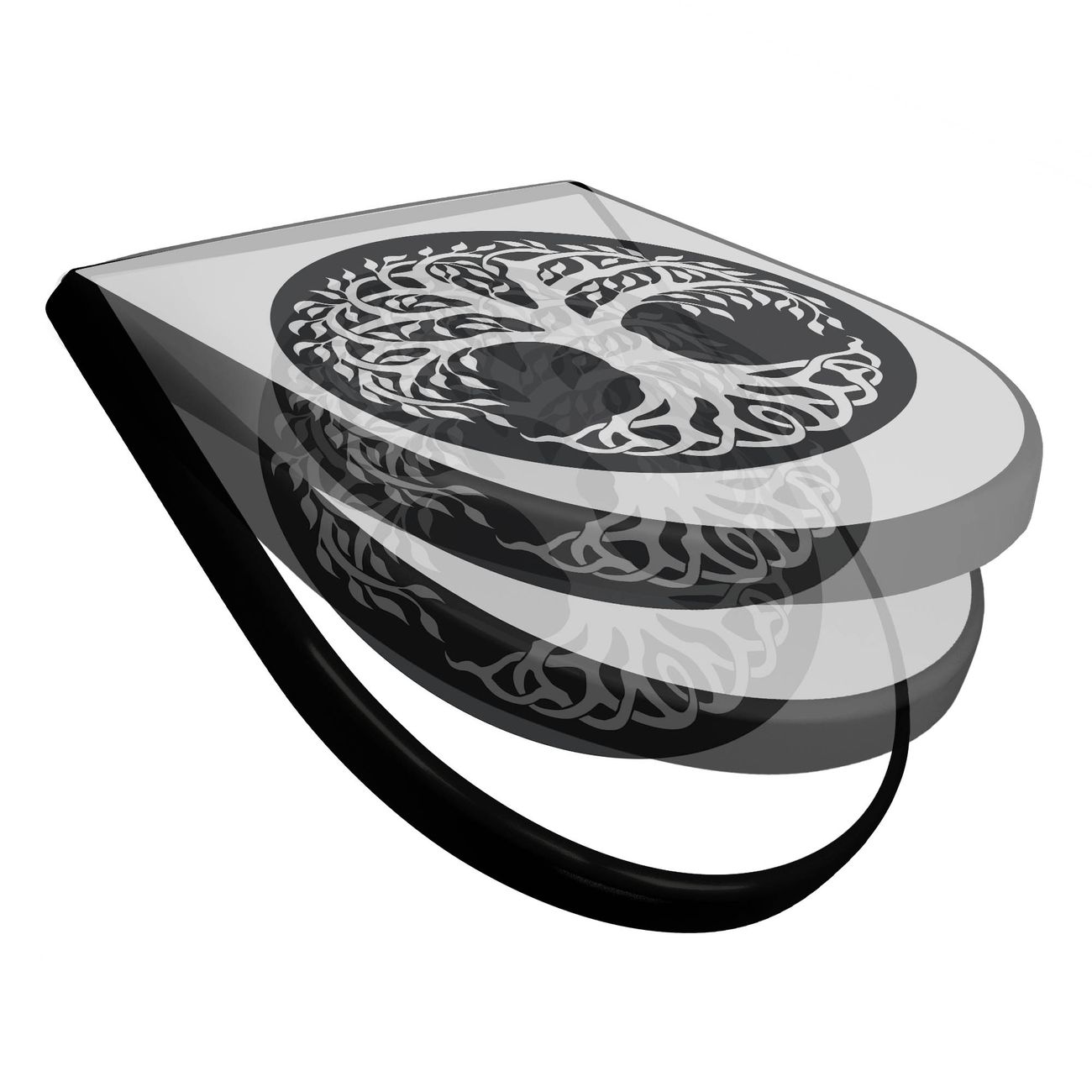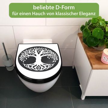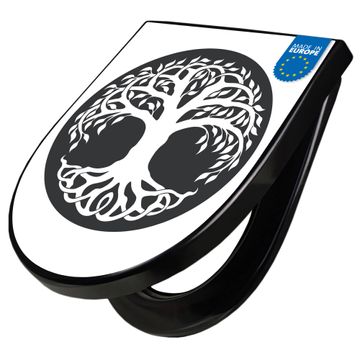WC Sitz D-Form Schwarz mit Absenkautomatik Motiv Lebensbaum Silhouette