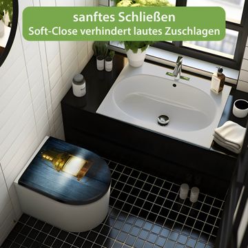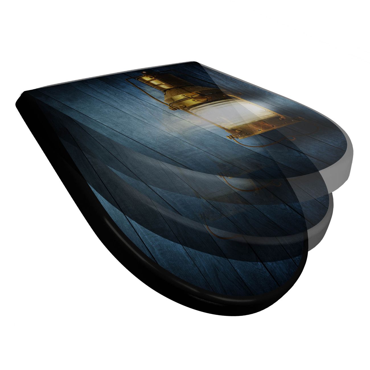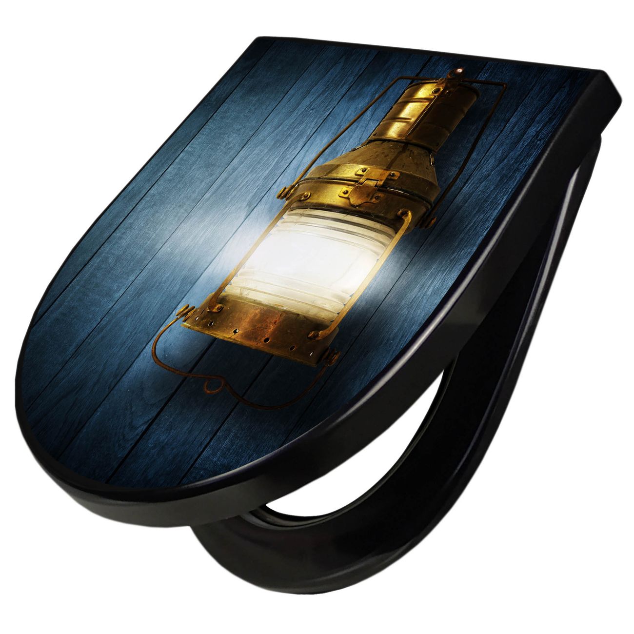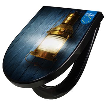 WC Sitz D-Form Schwarz mit Absenkautomatik Motiv Leuchte