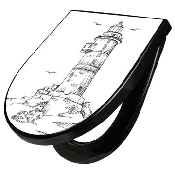 WC Sitz D-Form Schwarz mit Absenkautomatik Motiv Leuchtturm 6