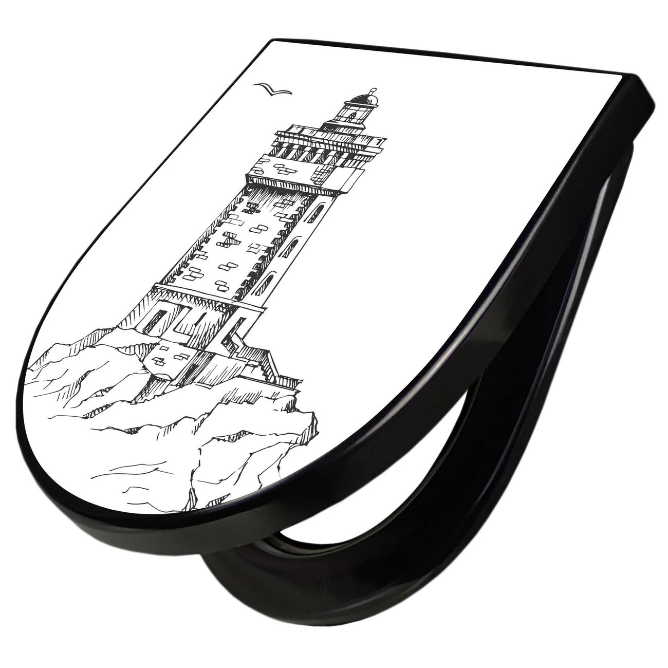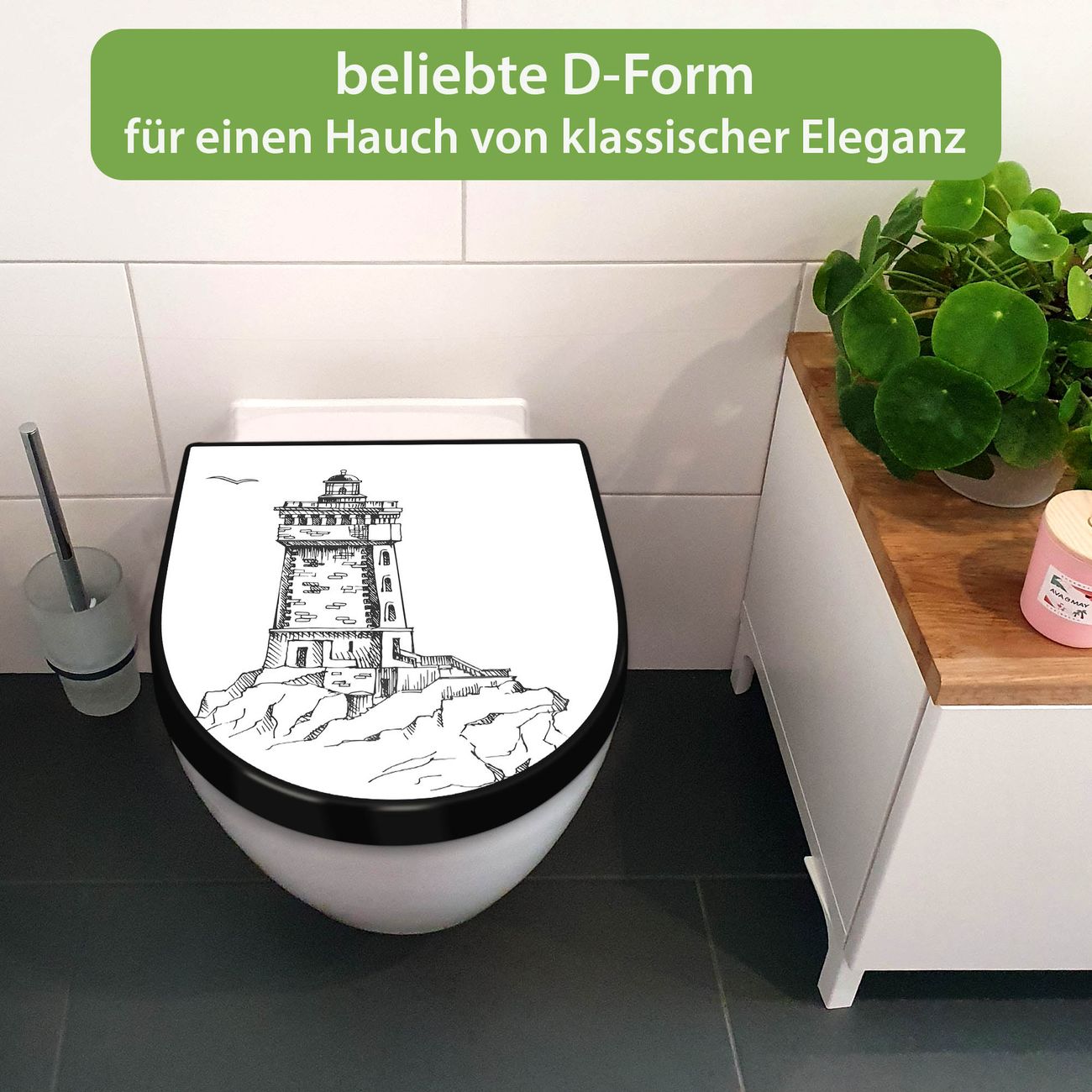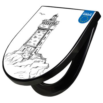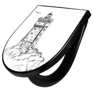 WC Sitz D-Form Schwarz mit Absenkautomatik Motiv Leuchtturm 8