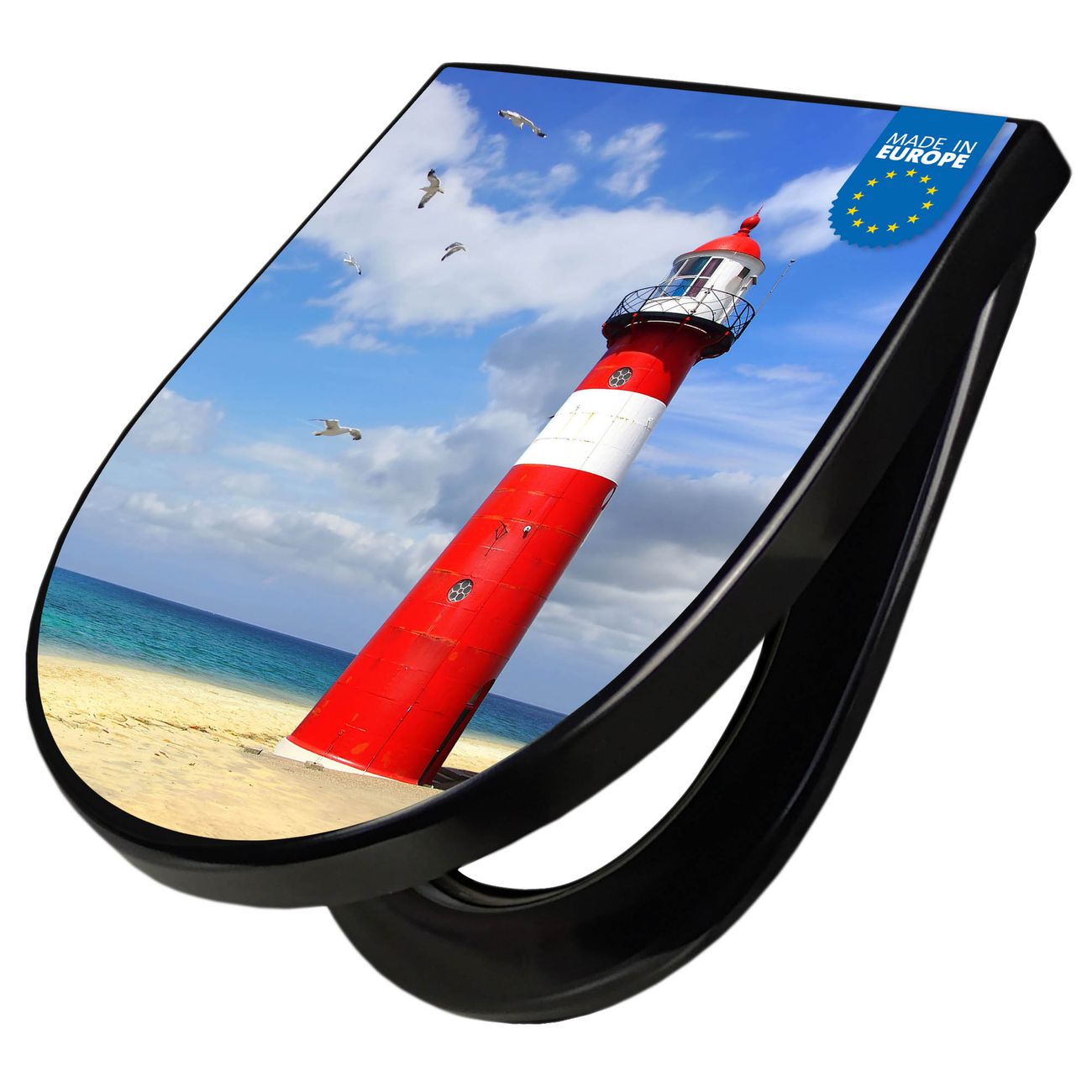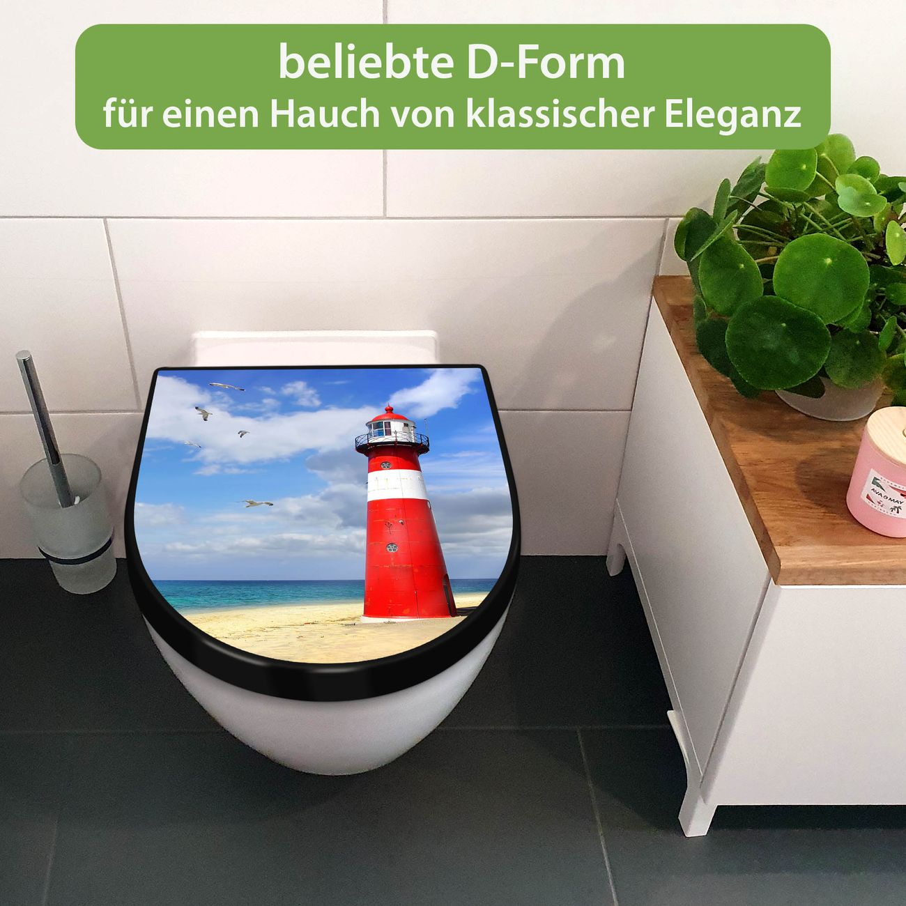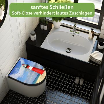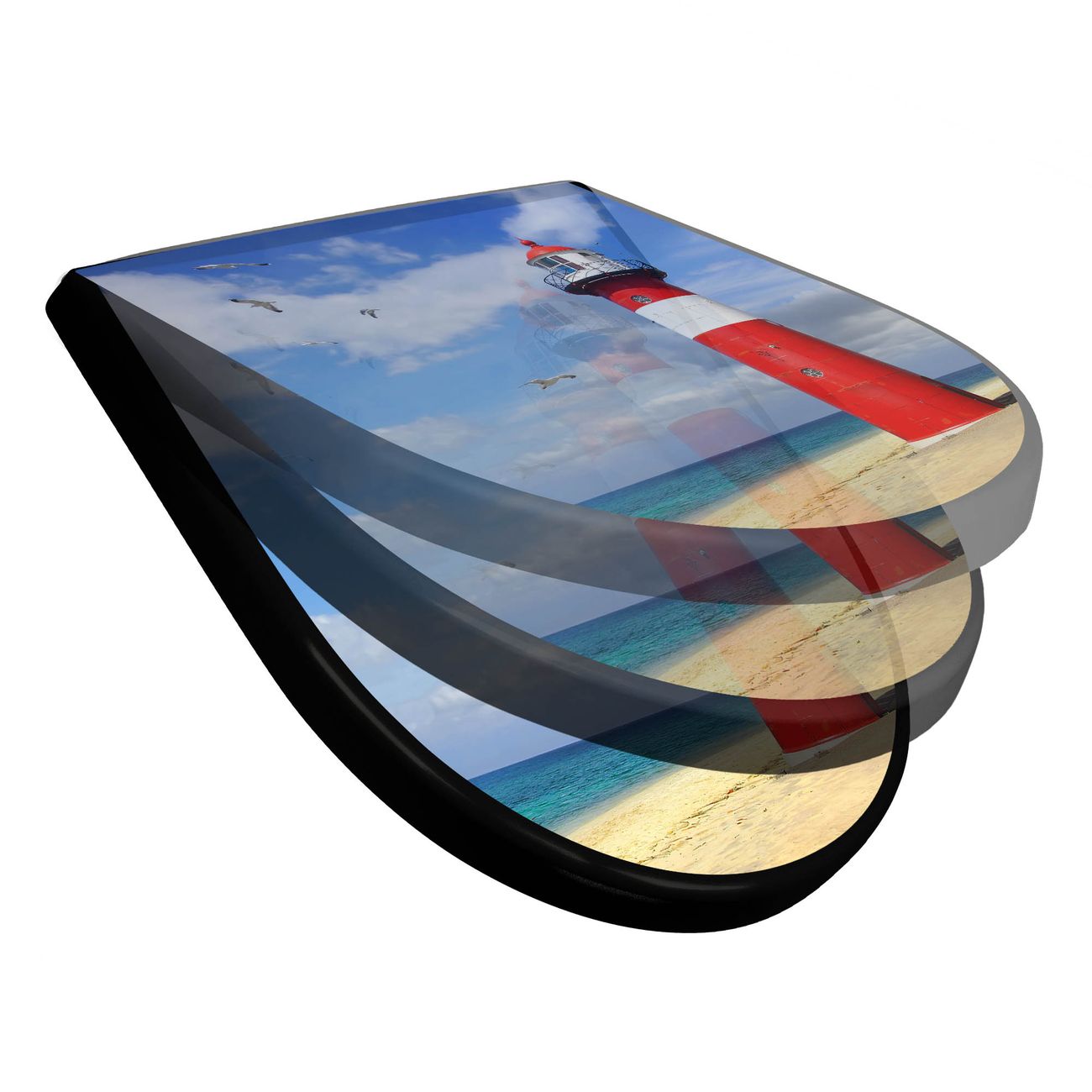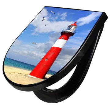 WC Sitz D-Form Schwarz mit Absenkautomatik Motiv Leuchtturm Westkapelle