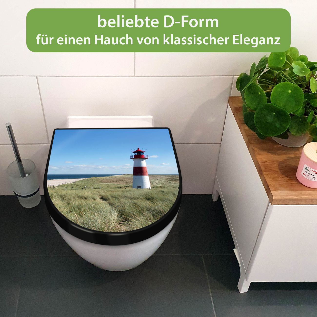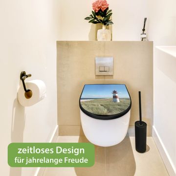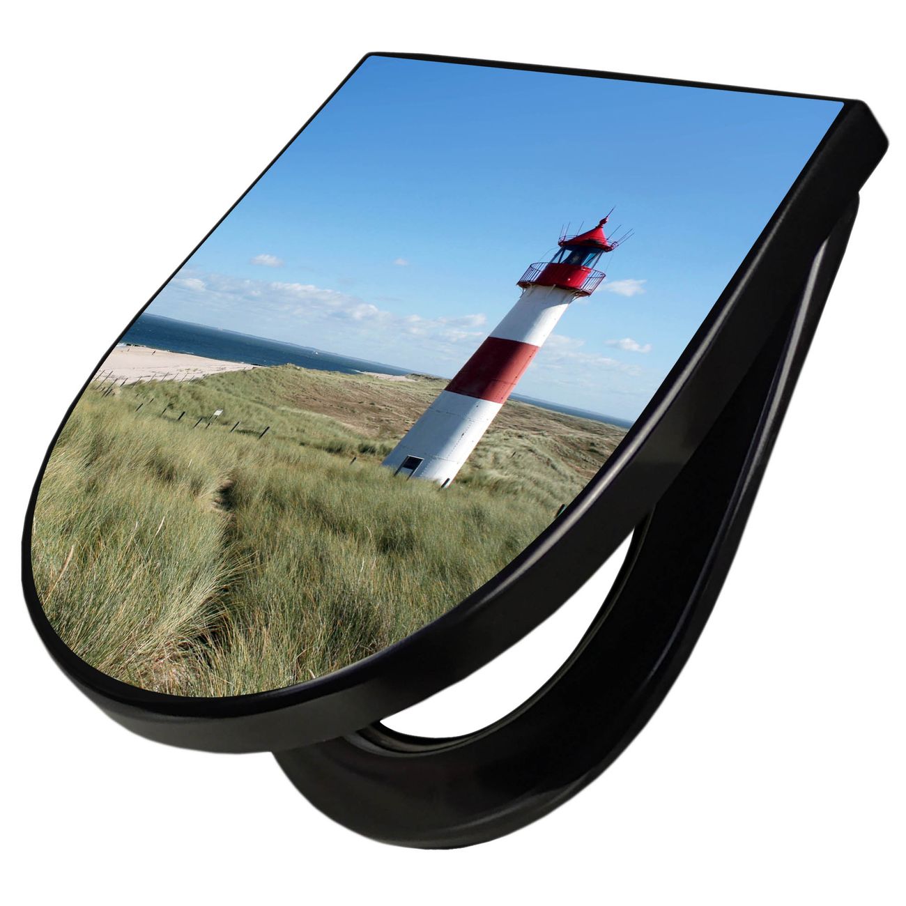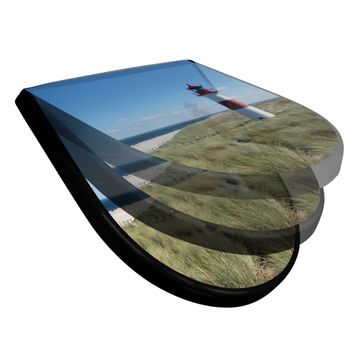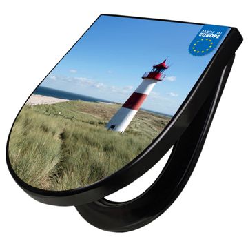 WC Sitz D-Form Schwarz mit Absenkautomatik Motiv Leuchtturm