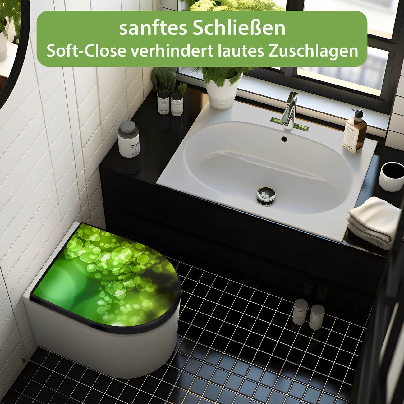 WC Sitz D-Form Schwarz mit Absenkautomatik Motiv Lichtspiel