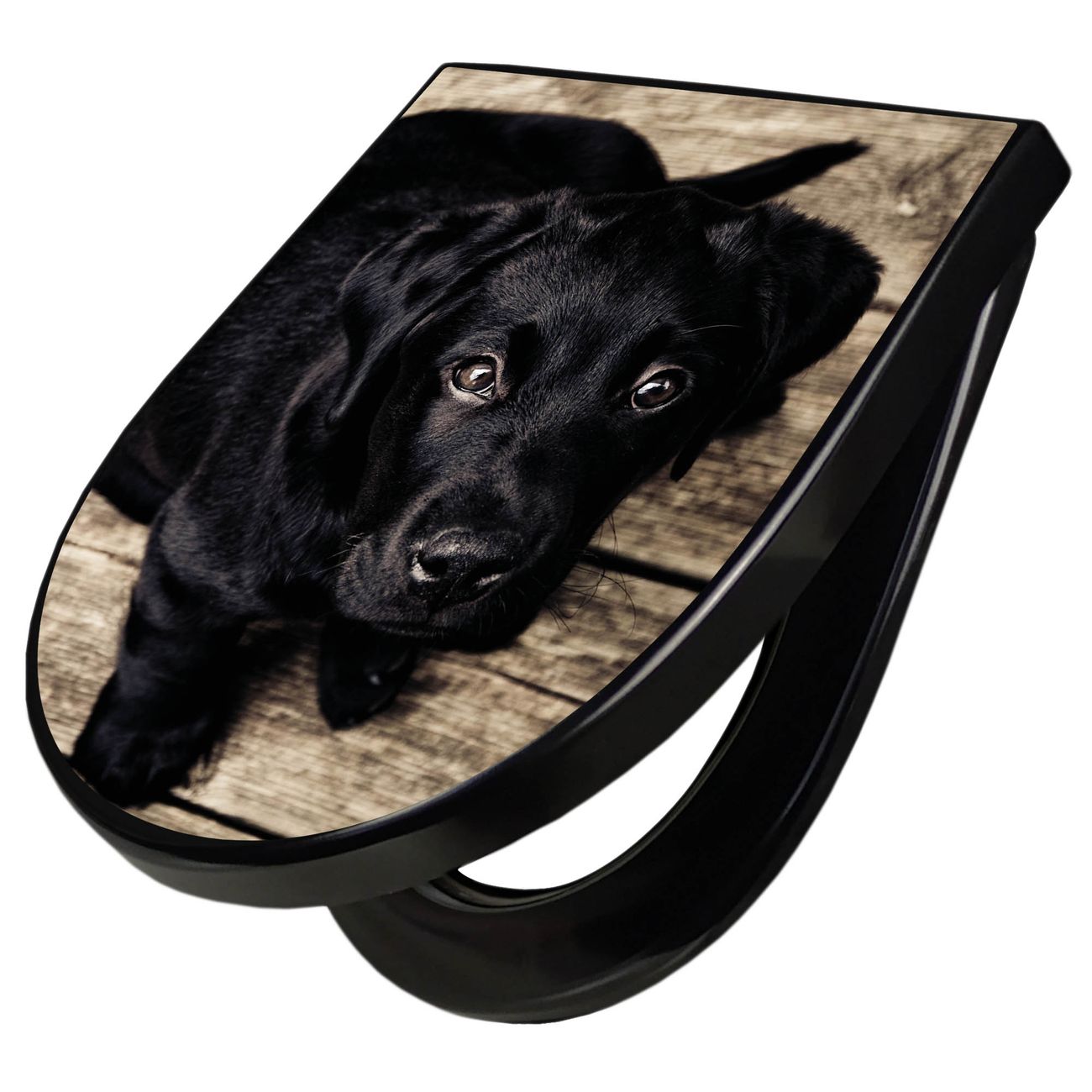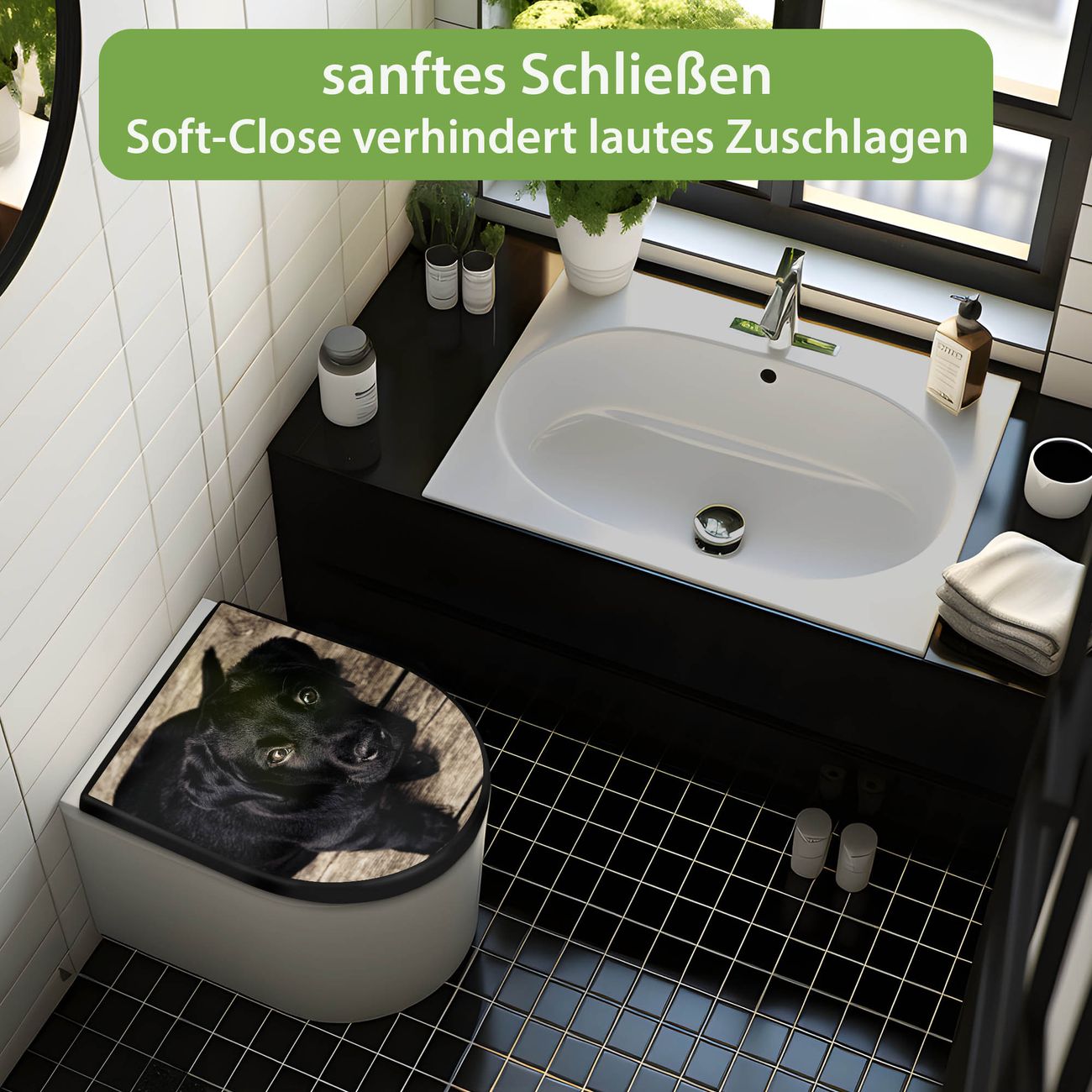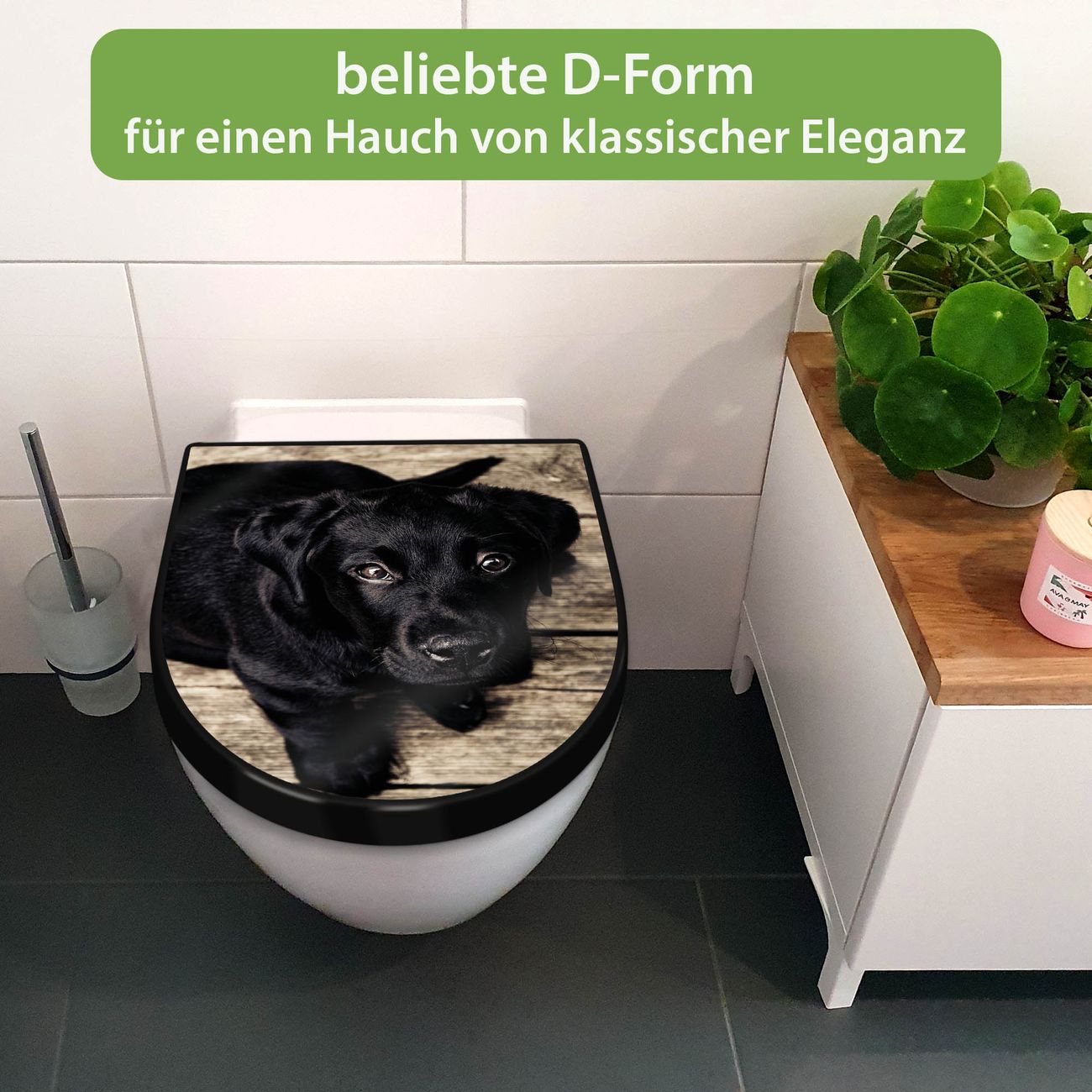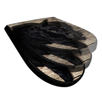 WC Sitz D-Form Schwarz mit Absenkautomatik Motiv Lieselotte