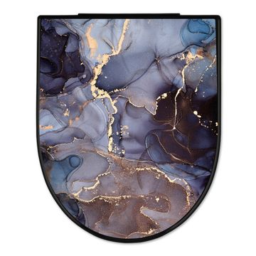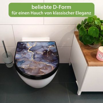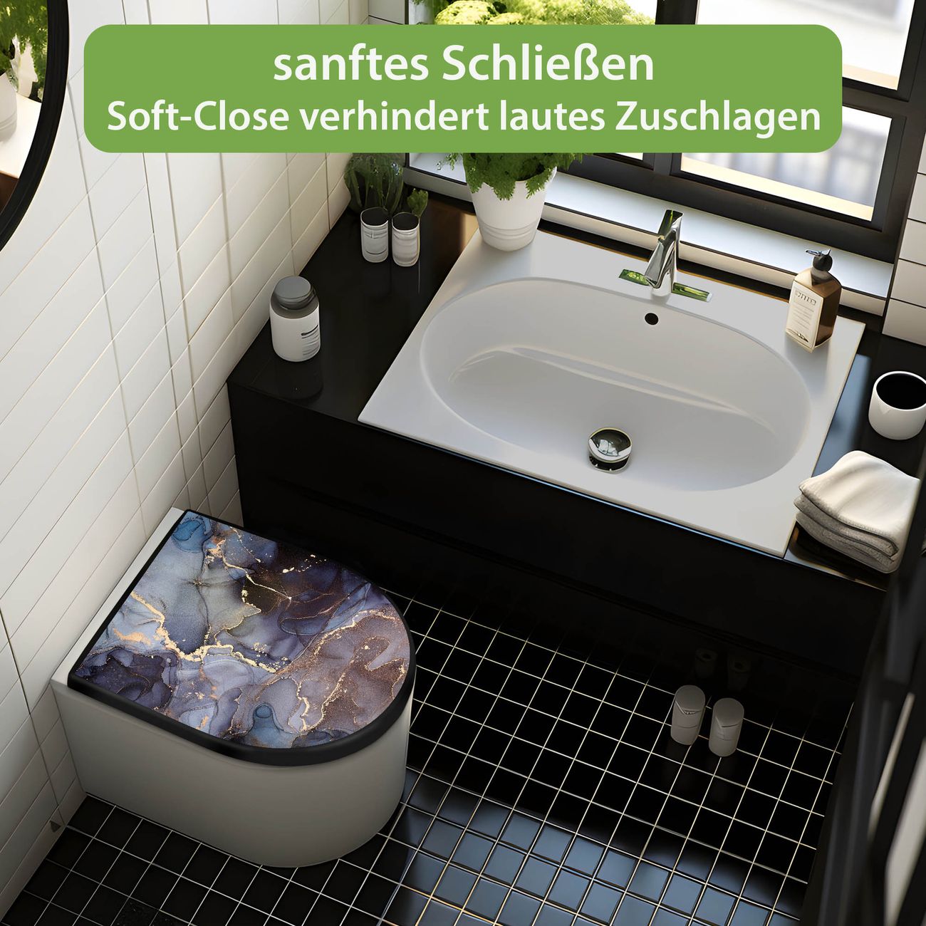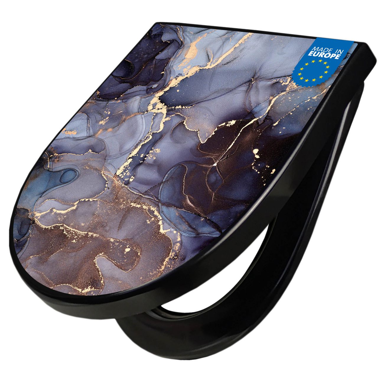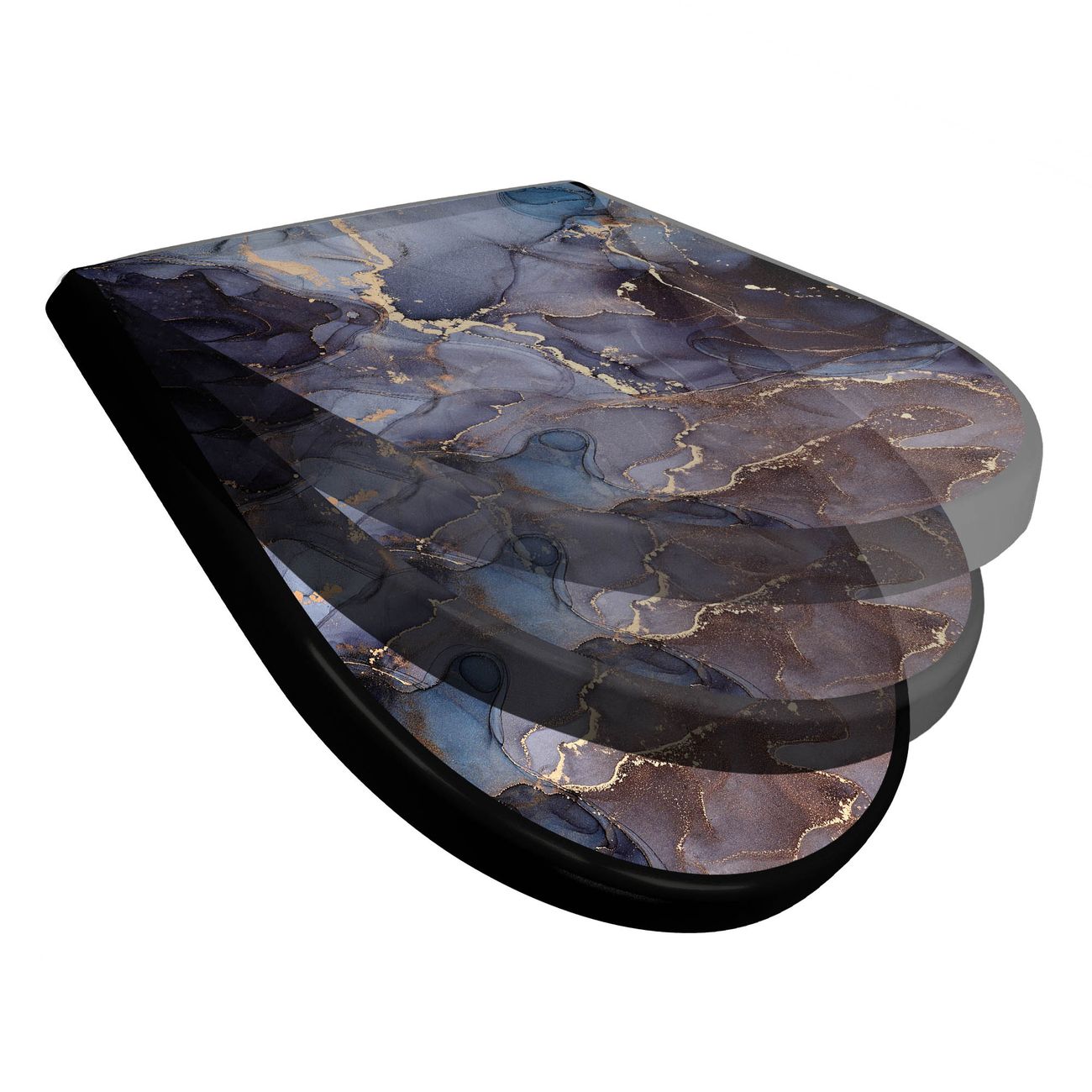 WC Sitz D-Form Schwarz mit Absenkautomatik Motiv Lila Marmor mit Gold 1