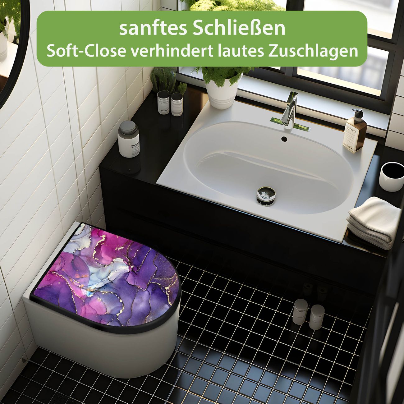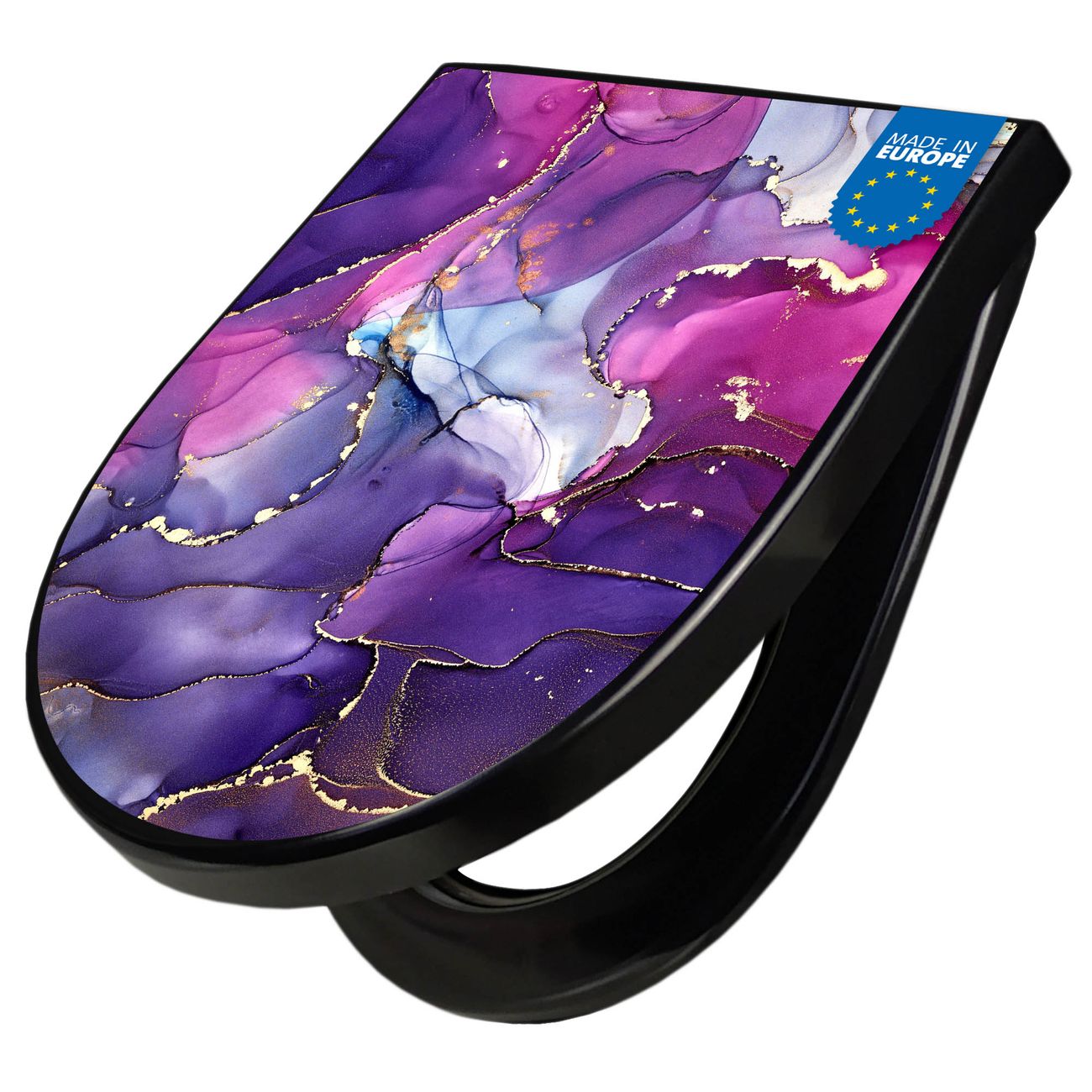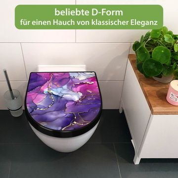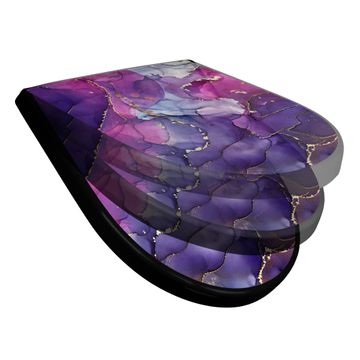 WC Sitz D-Form Schwarz mit Absenkautomatik Motiv Lila Marmor mit Gold 2