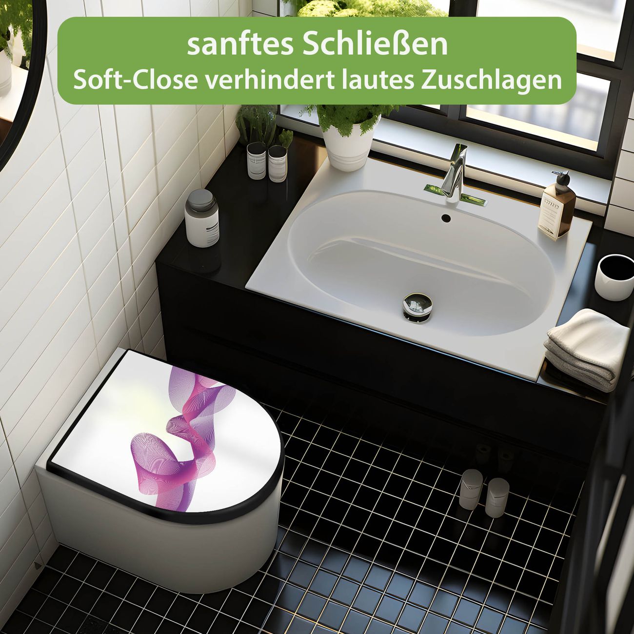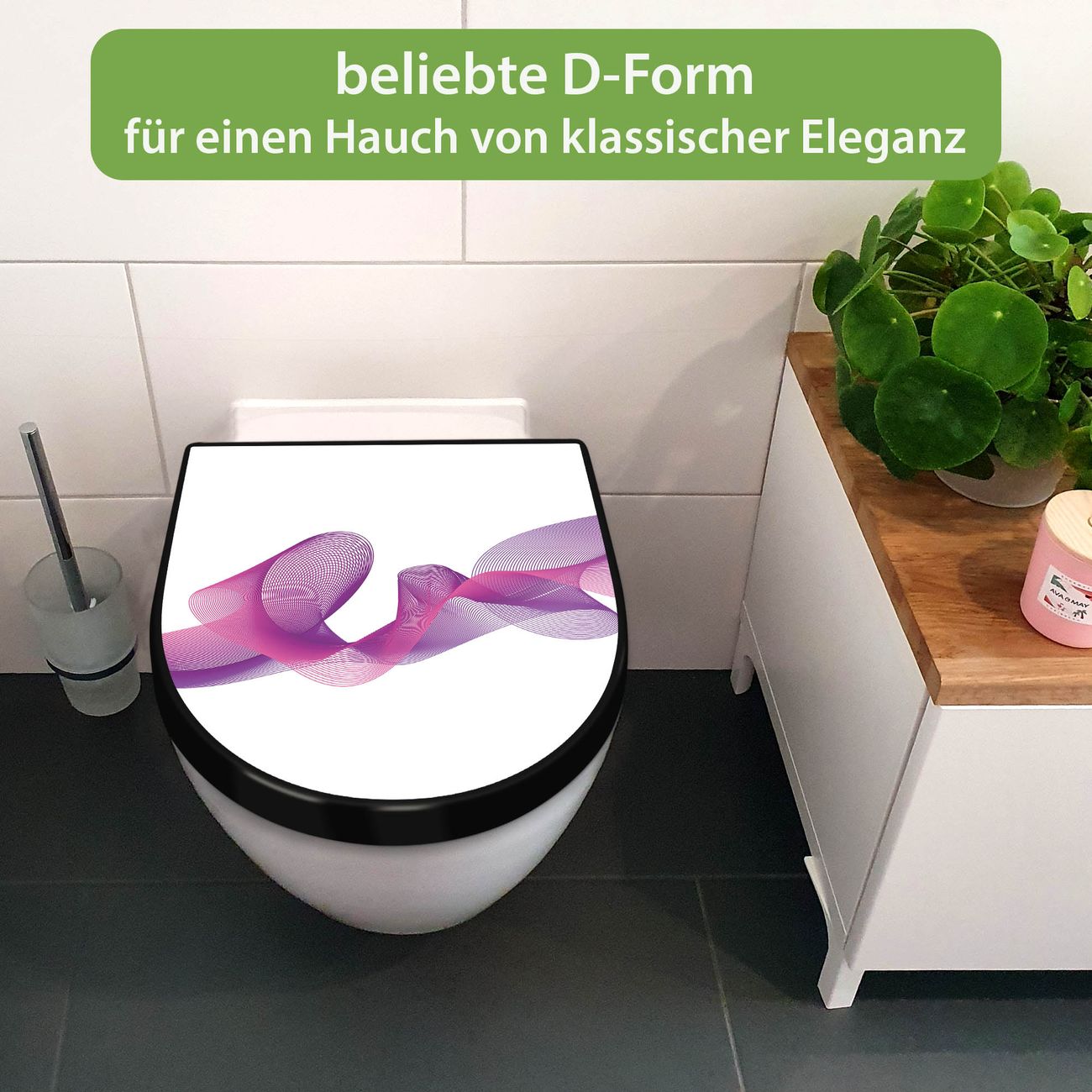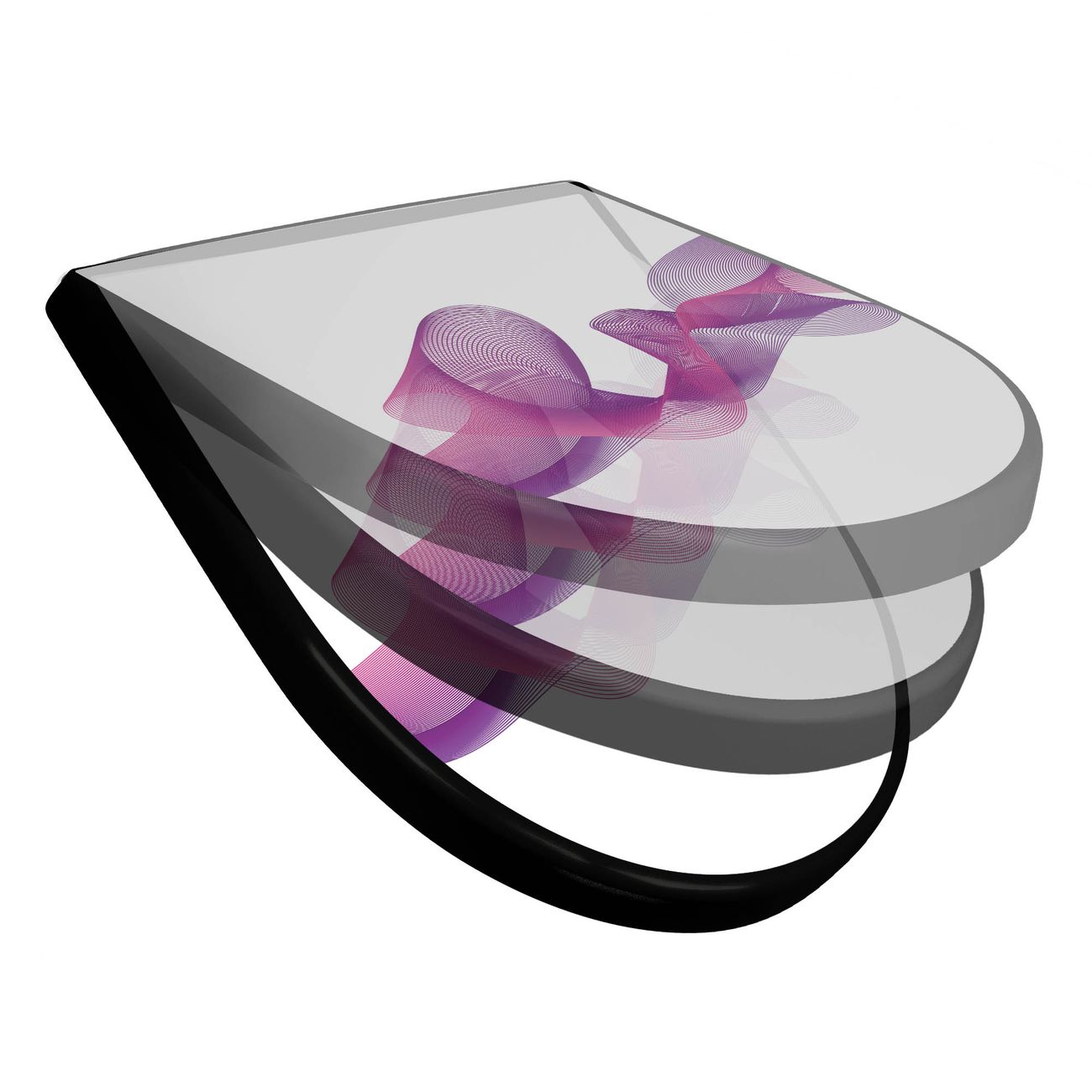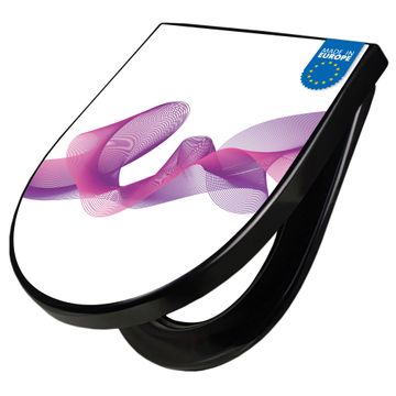 WC Sitz D-Form Schwarz mit Absenkautomatik Motiv Lila Schleier