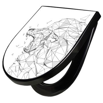WC Sitz D-Form Schwarz mit Absenkautomatik Motiv Löwe abstrakt 2