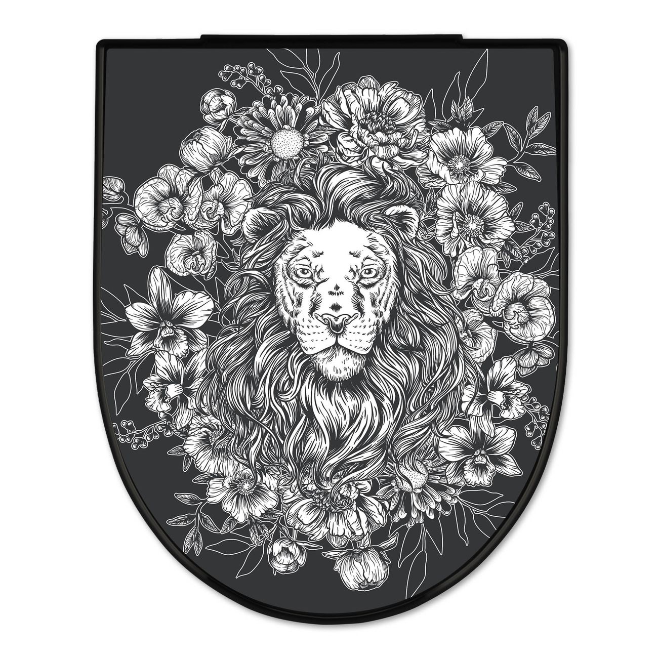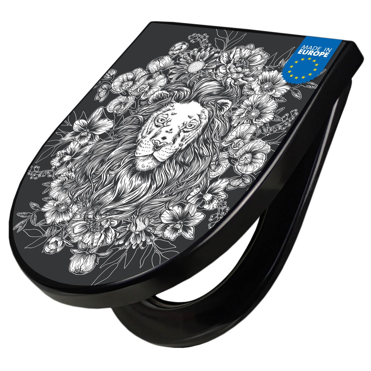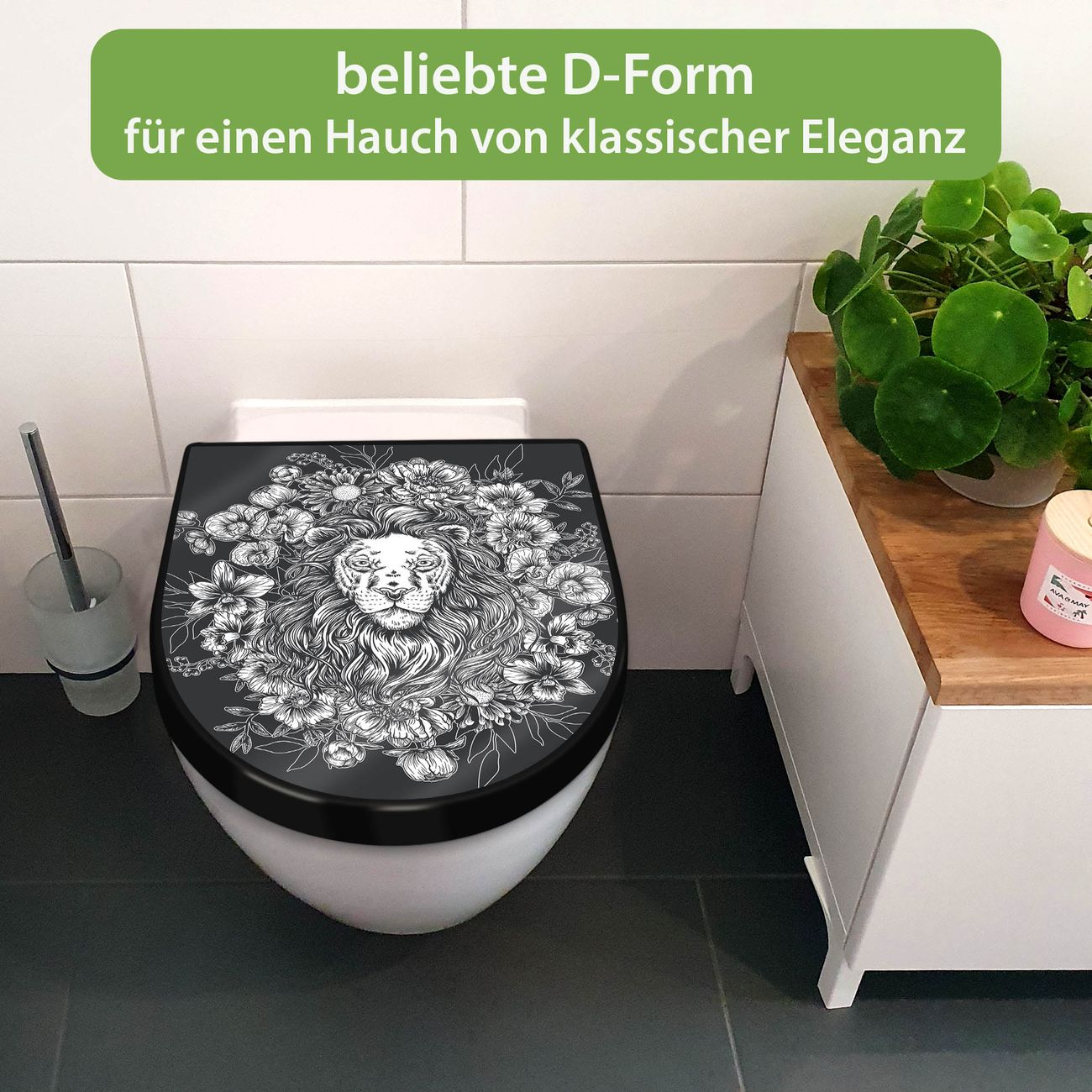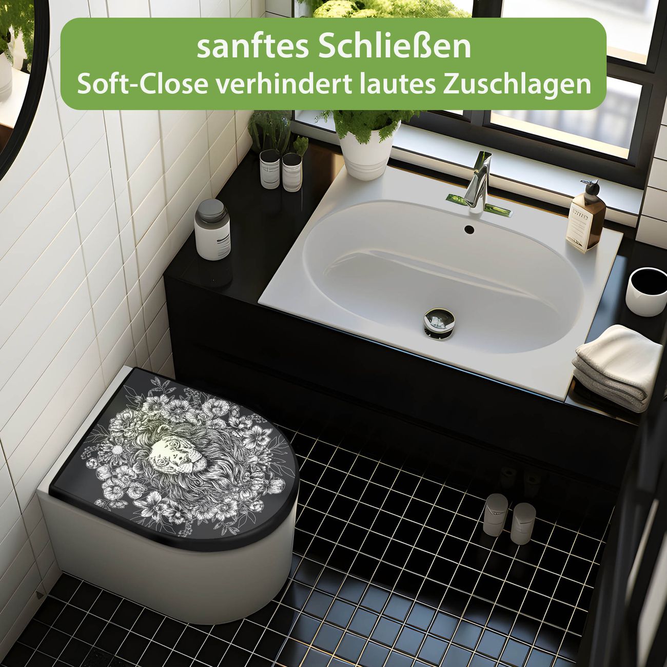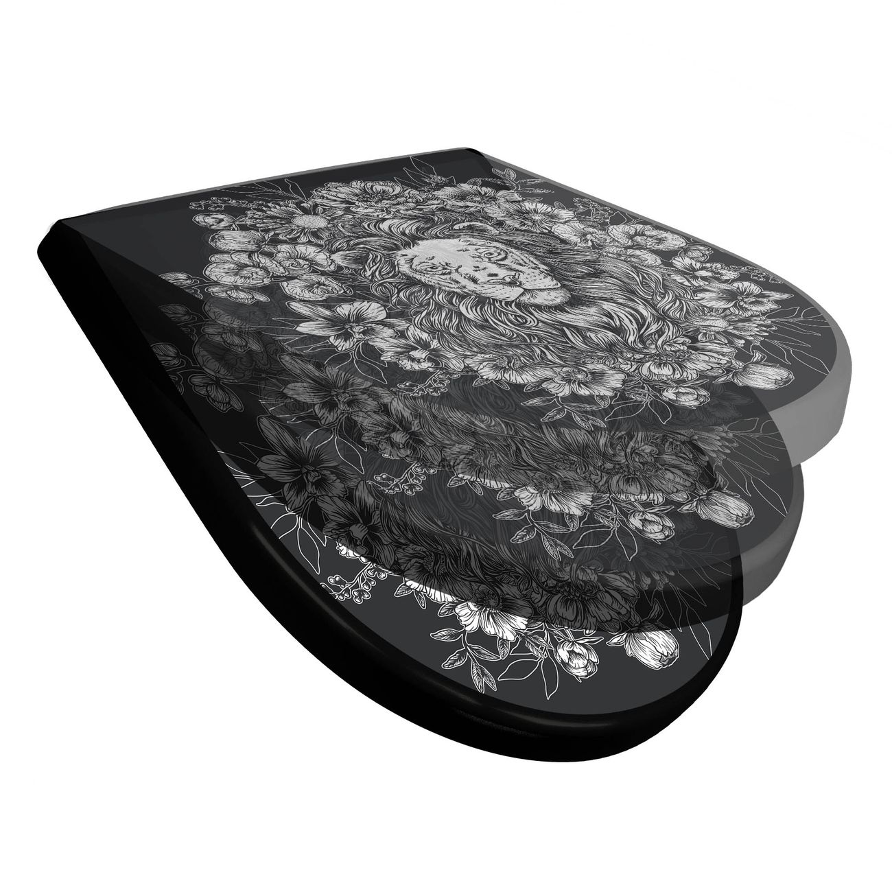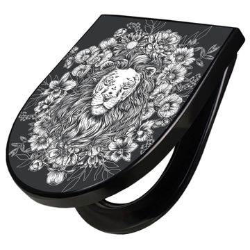 WC Sitz D-Form Schwarz mit Absenkautomatik Motiv Löwenblütenpracht