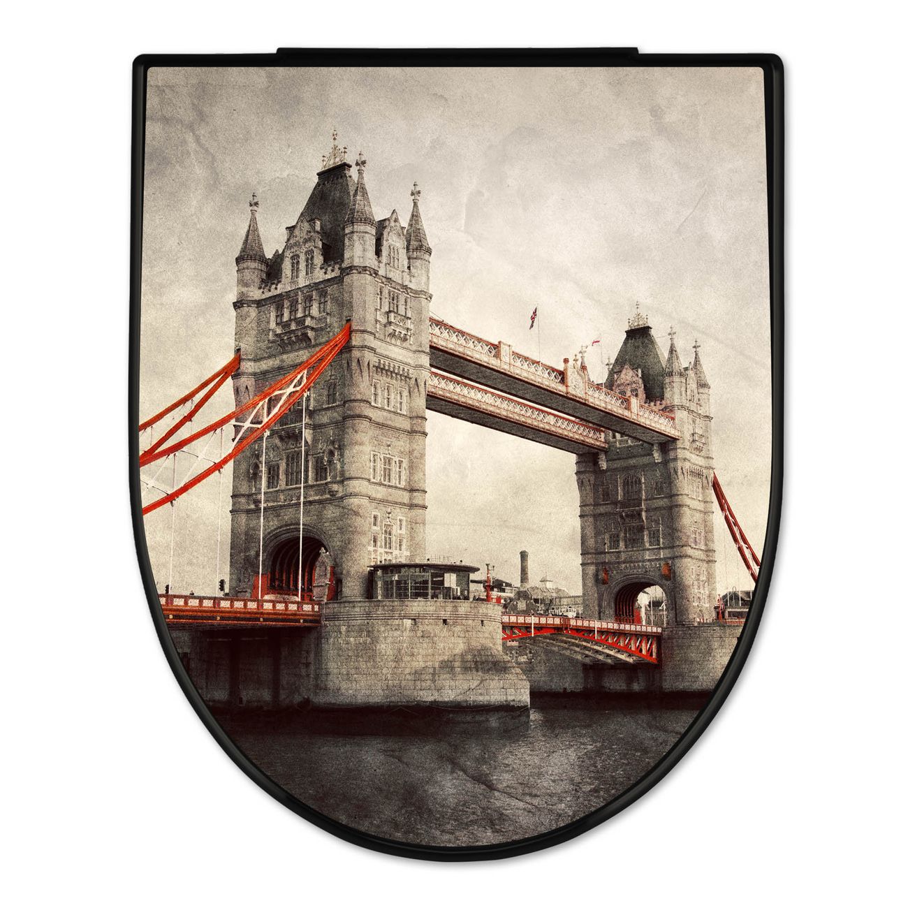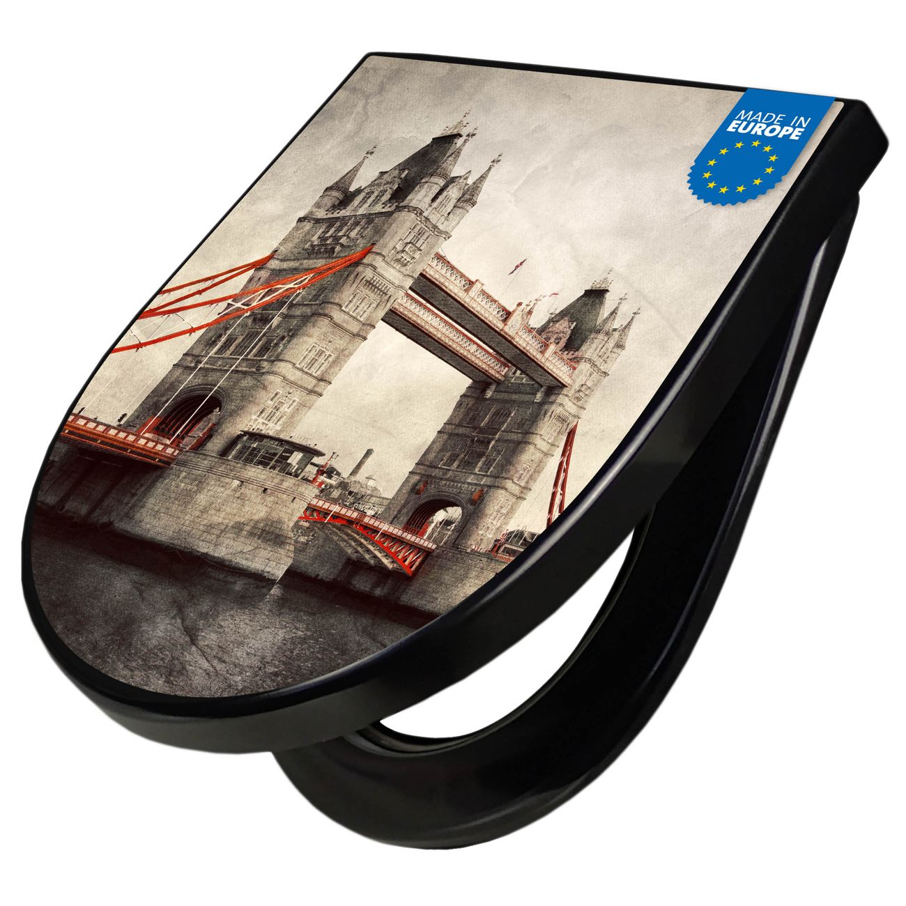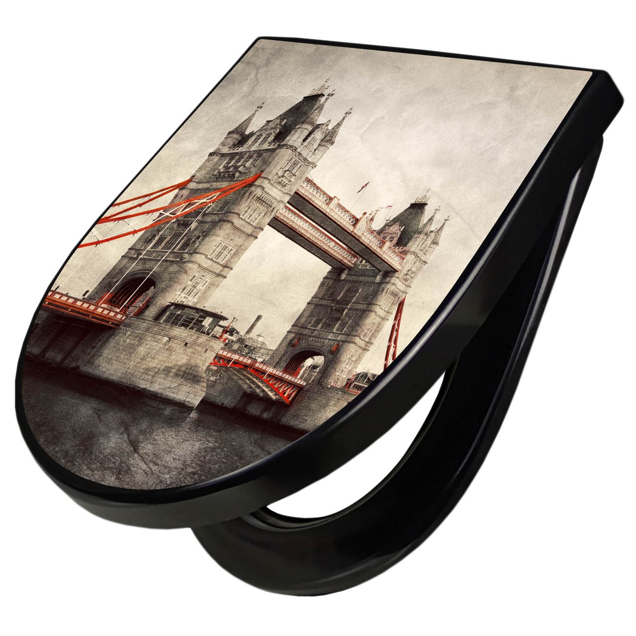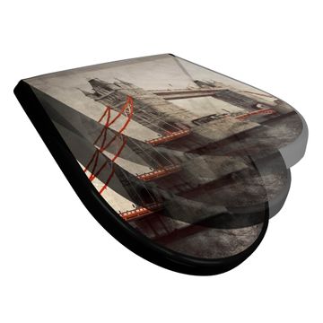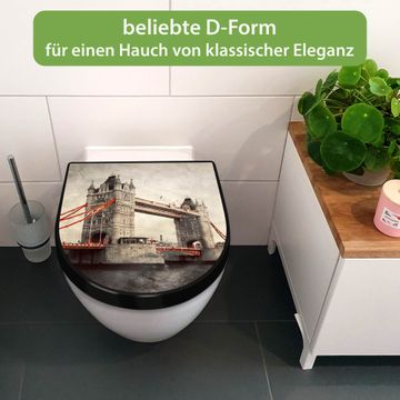 WC Sitz D-Form Schwarz mit Absenkautomatik Motiv London Bridge