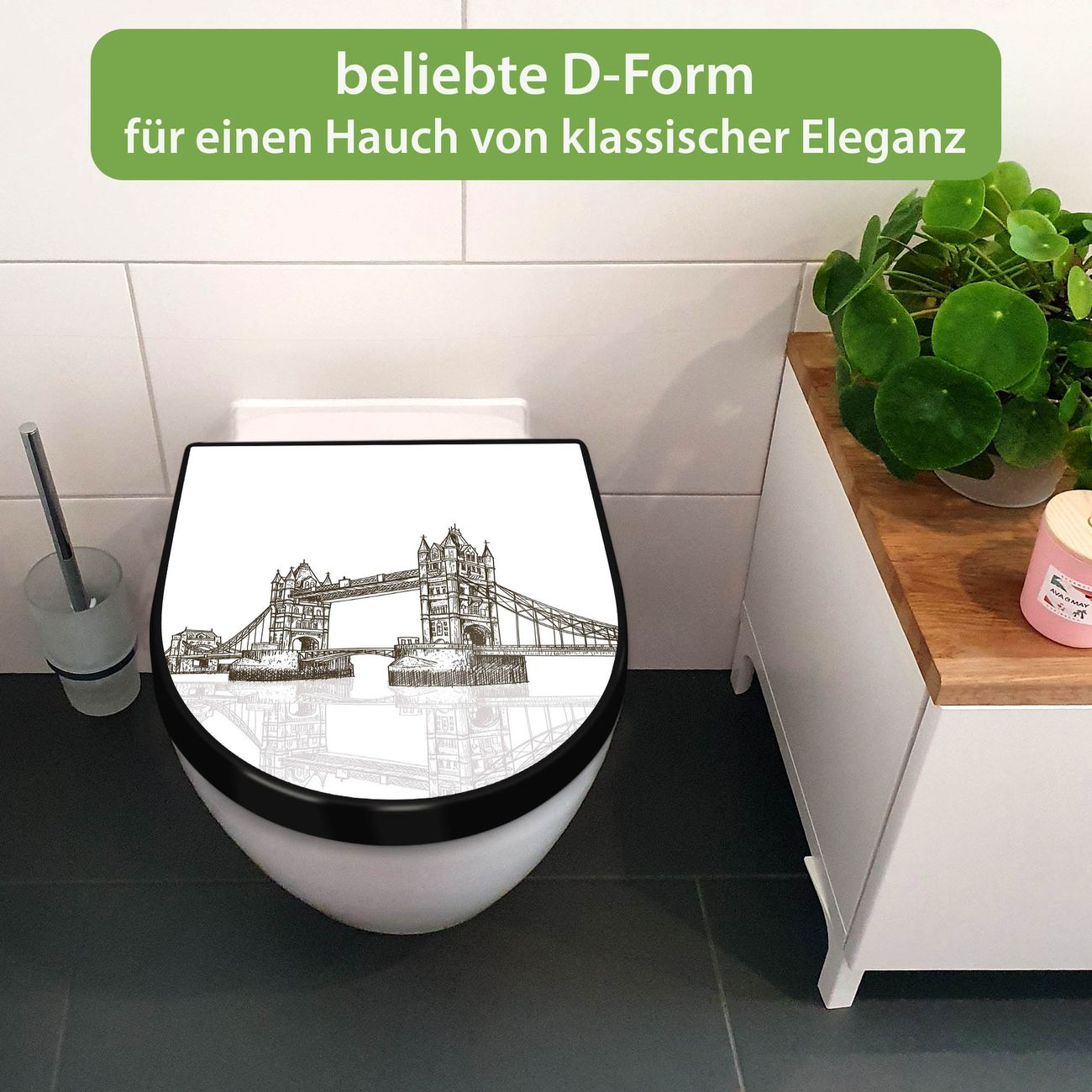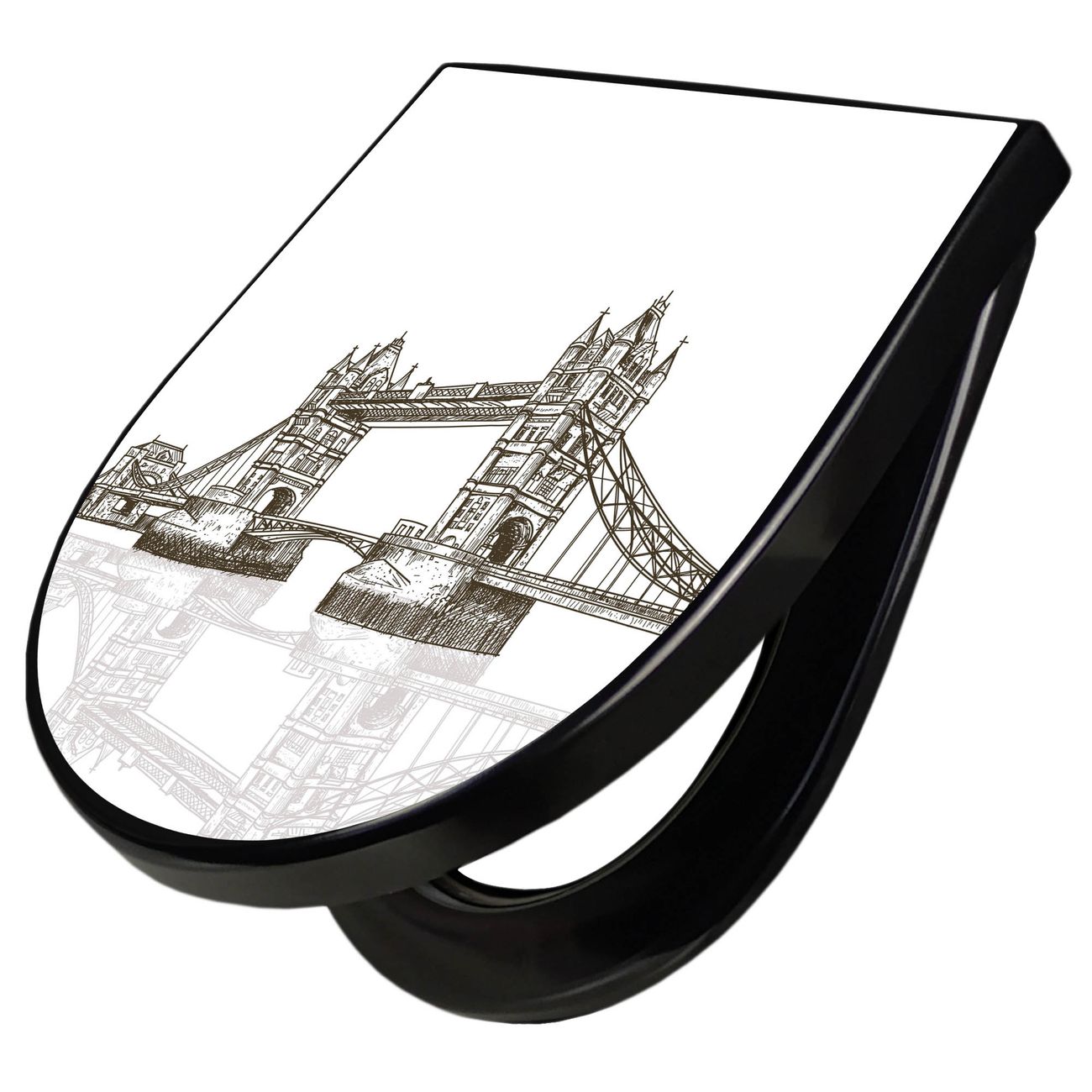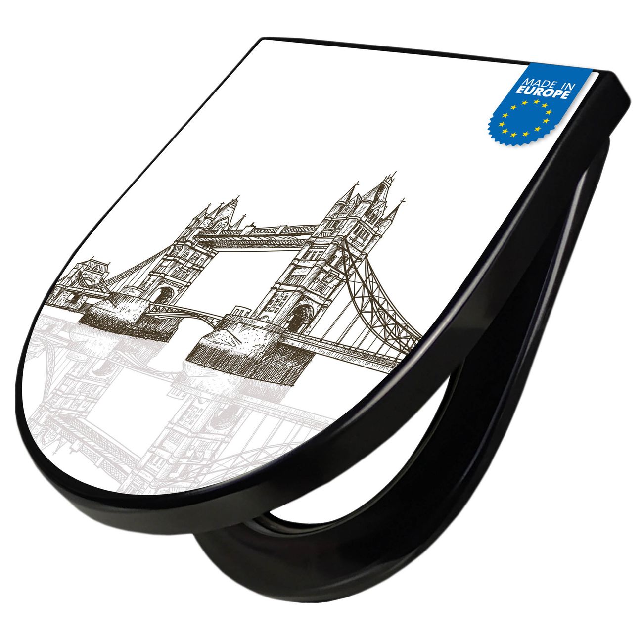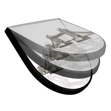 WC Sitz D-Form Schwarz mit Absenkautomatik Motiv London Brücke Skizze