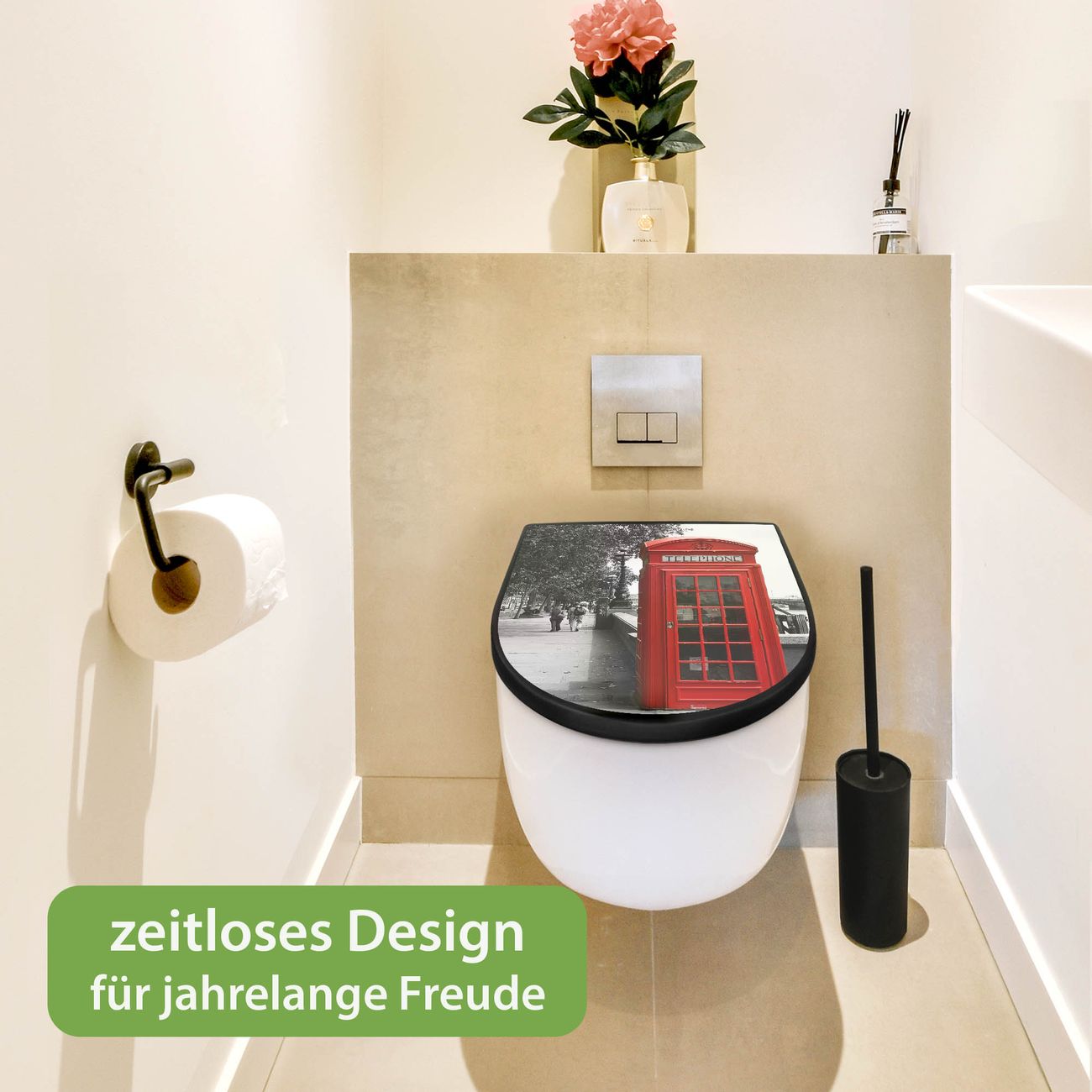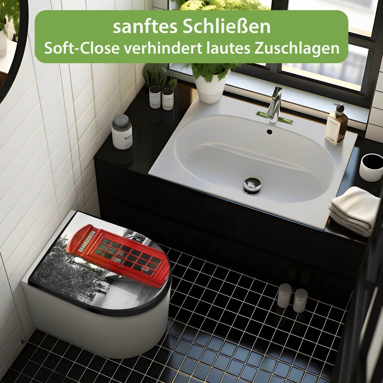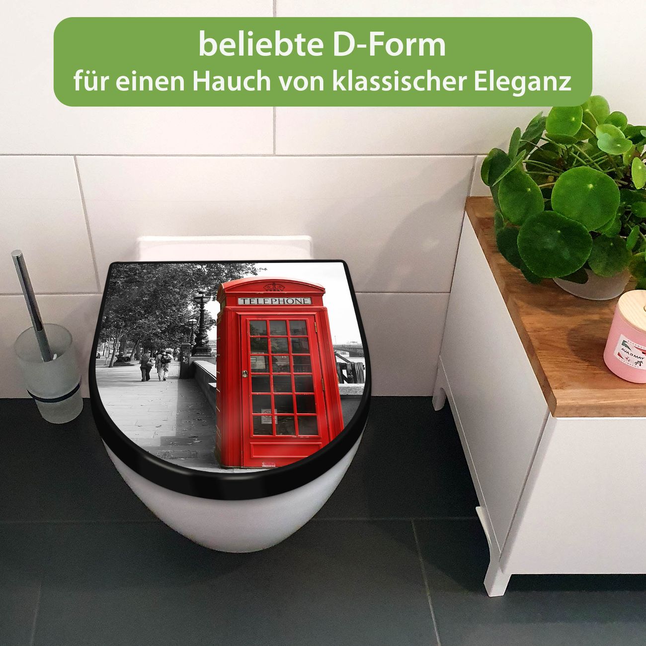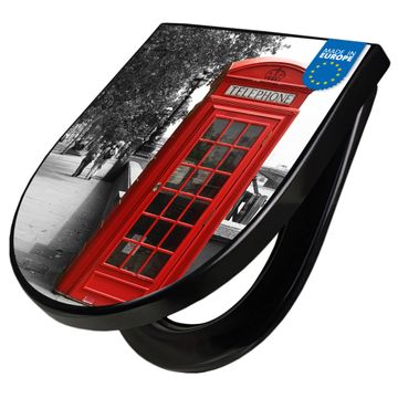 WC Sitz D-Form Schwarz mit Absenkautomatik Motiv London Red Telephone