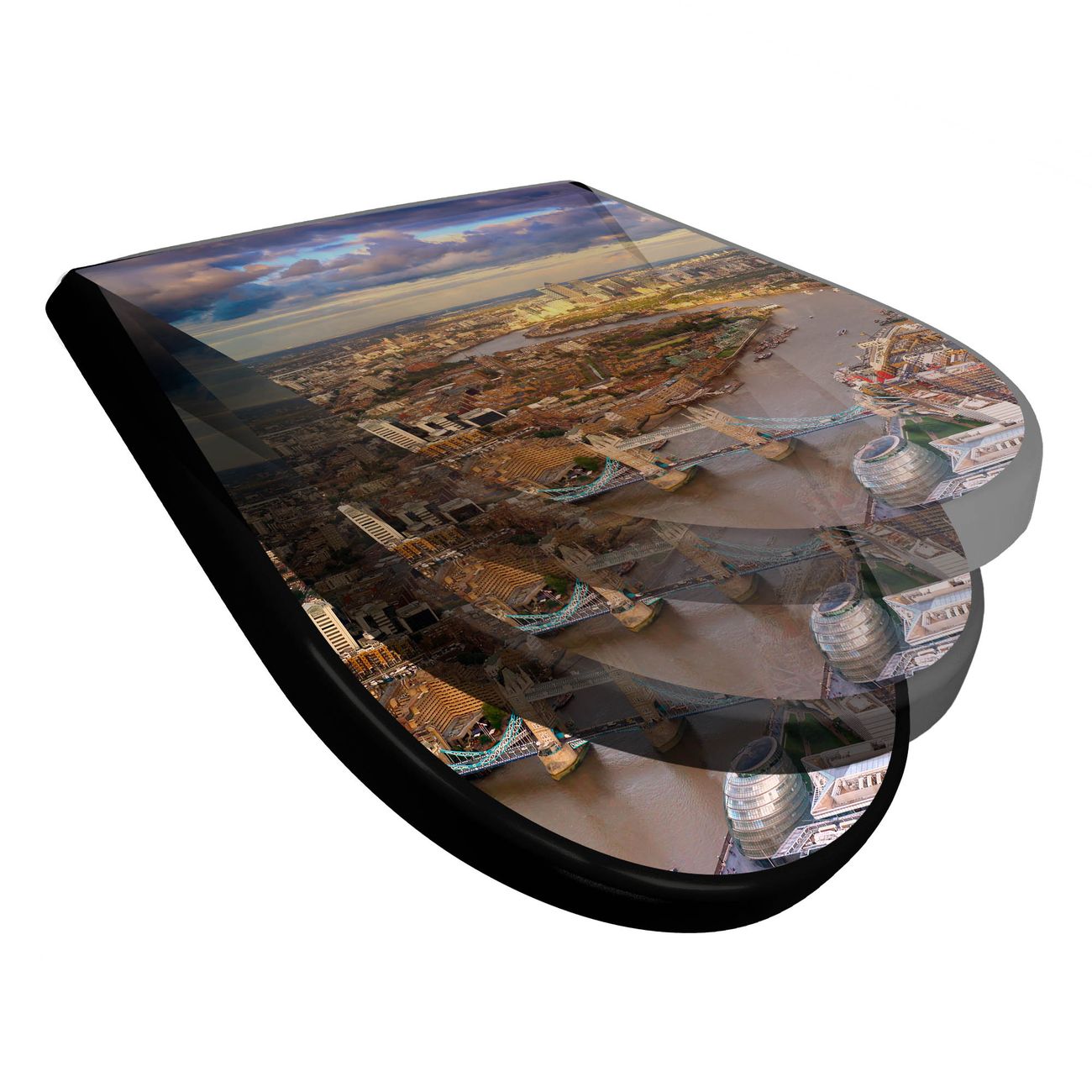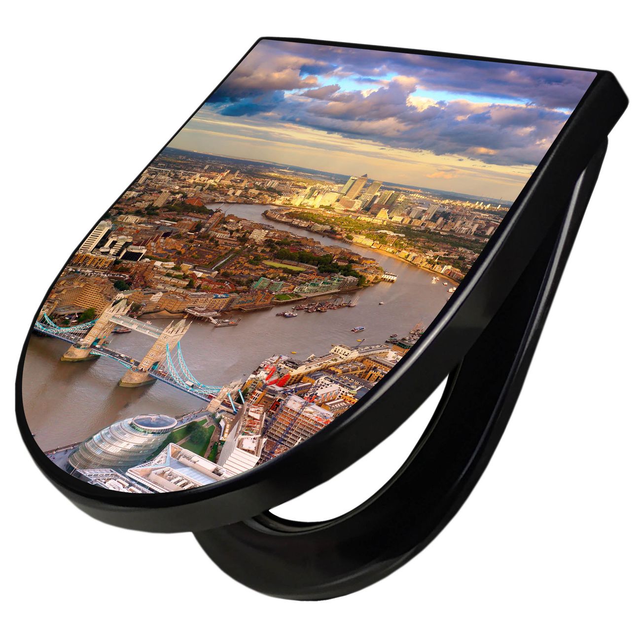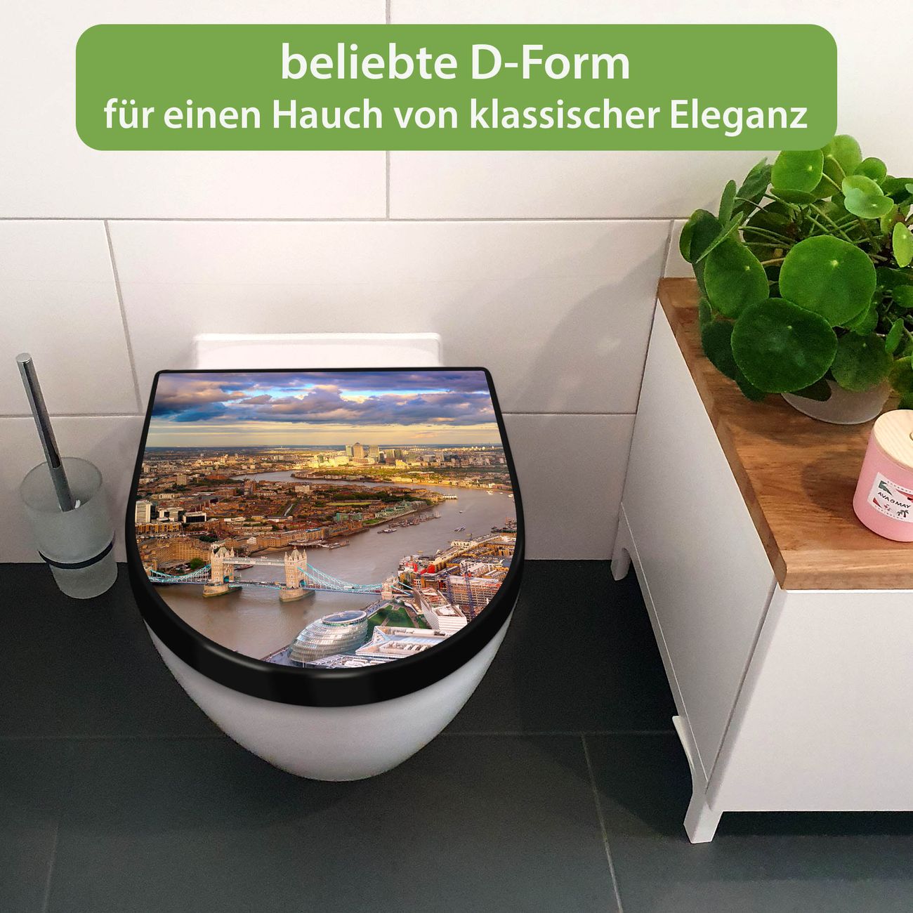 WC Sitz D-Form Schwarz mit Absenkautomatik Motiv London