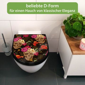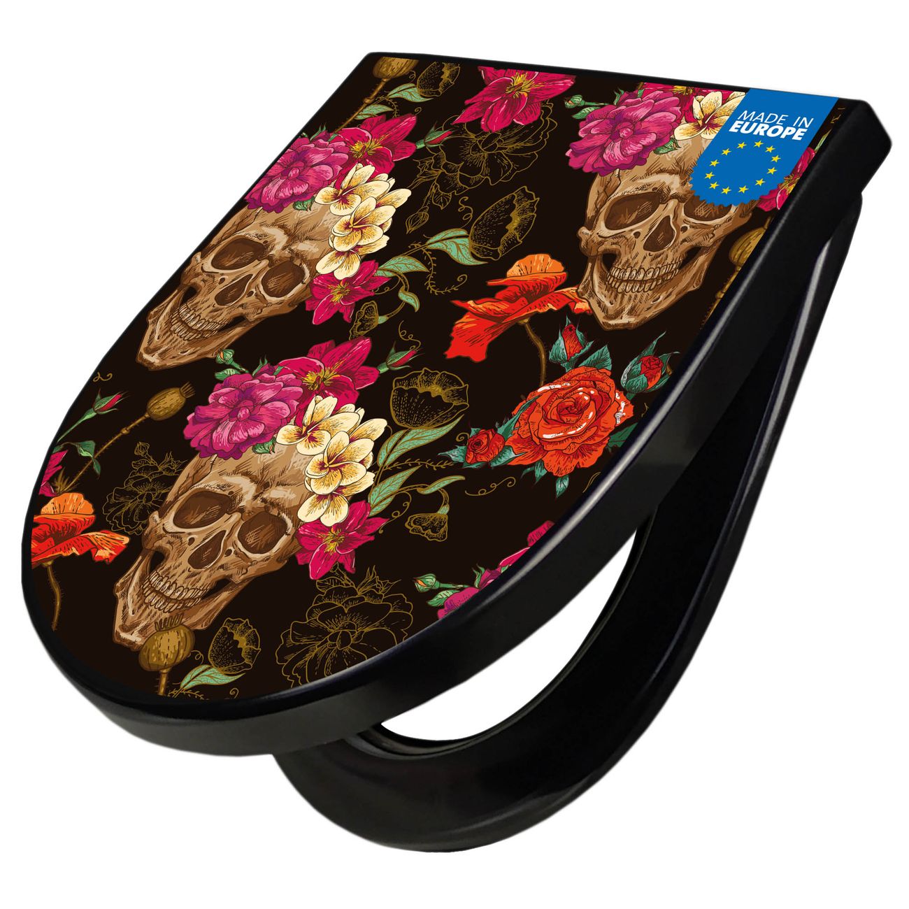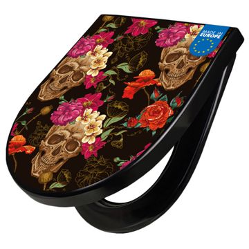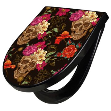 WC Sitz D-Form Schwarz mit Absenkautomatik Motiv Los Dias de Muertos