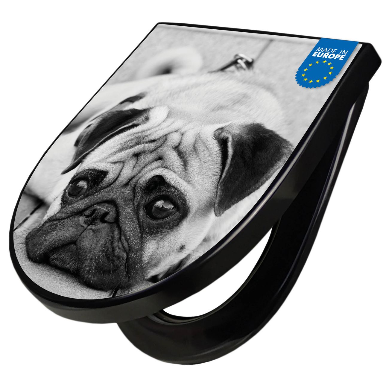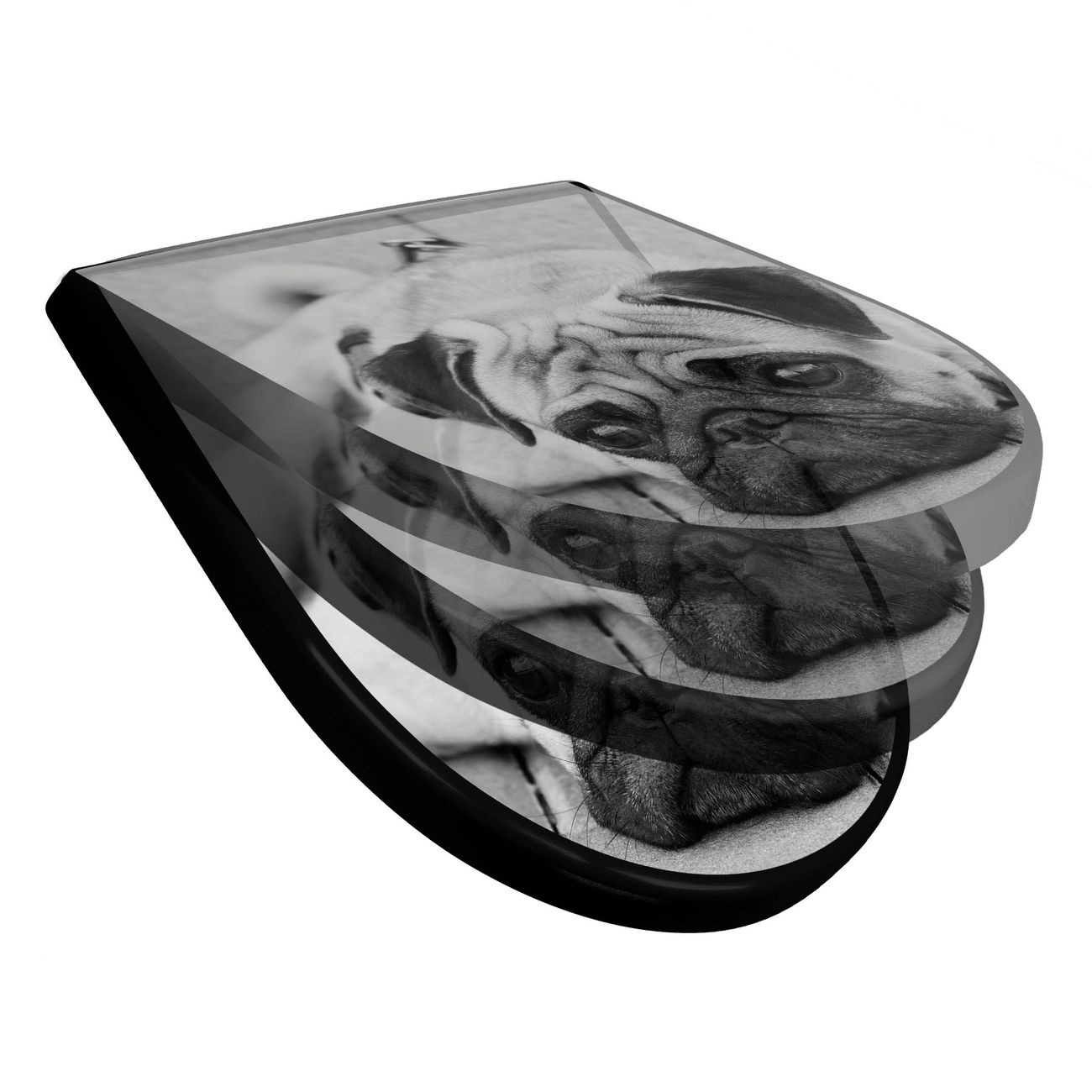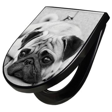 WC Sitz D-Form Schwarz mit Absenkautomatik Motiv Lotty