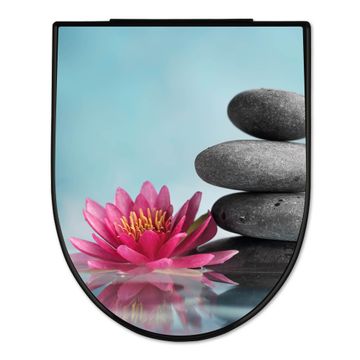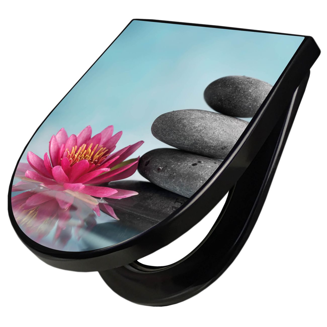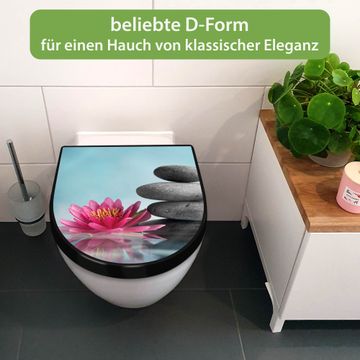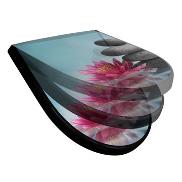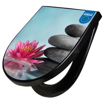 WC Sitz D-Form Schwarz mit Absenkautomatik Motiv Lotus Und Steine