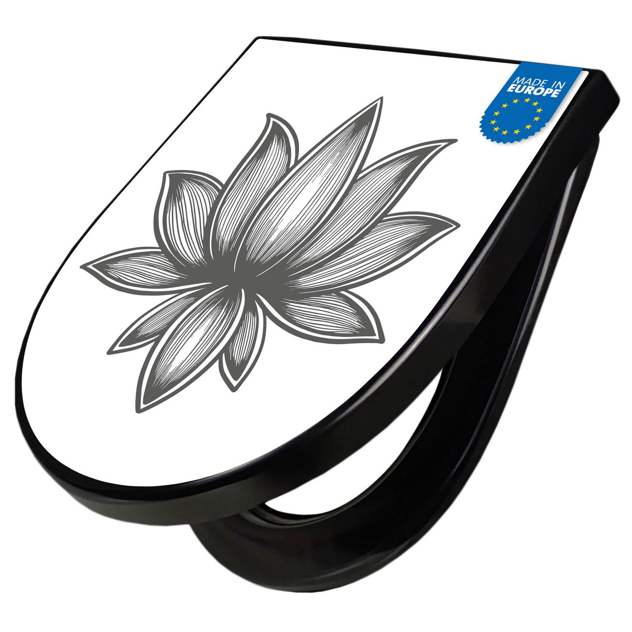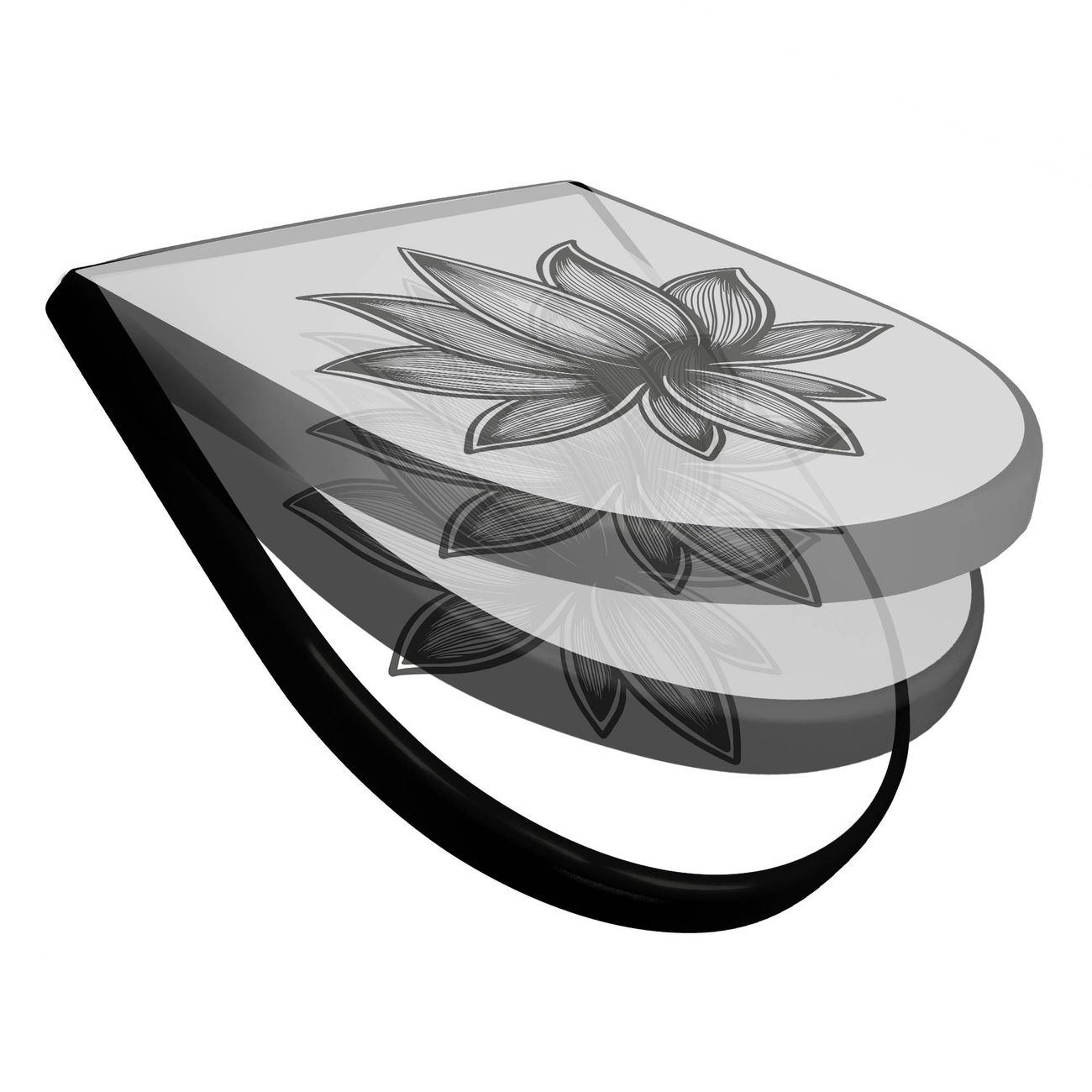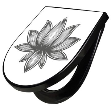 WC Sitz D-Form Schwarz mit Absenkautomatik Motiv Lotusblüte 10