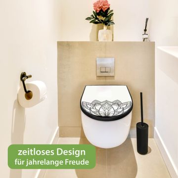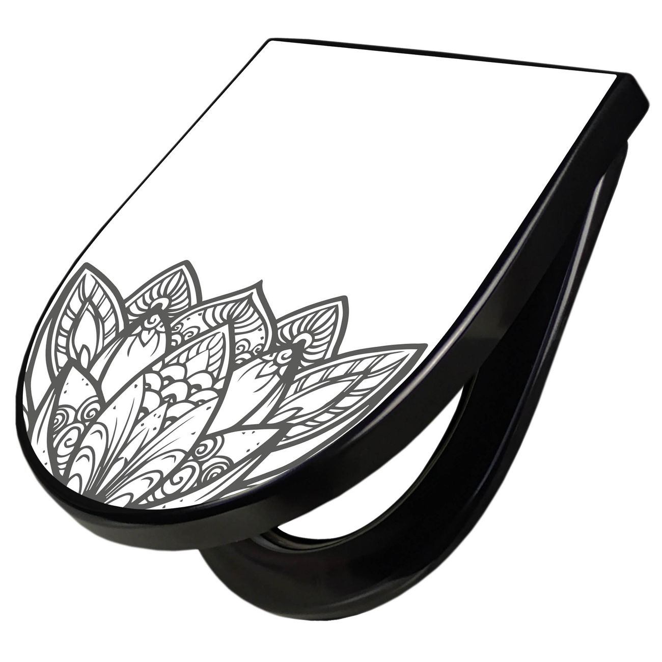 WC Sitz D-Form Schwarz mit Absenkautomatik Motiv Lotusblüte 8
