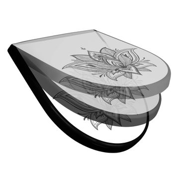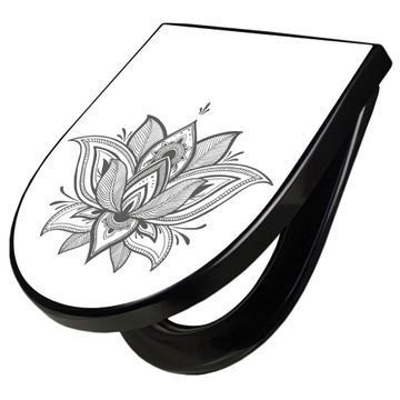 WC Sitz D-Form Schwarz mit Absenkautomatik Motiv Lotusblüte 9