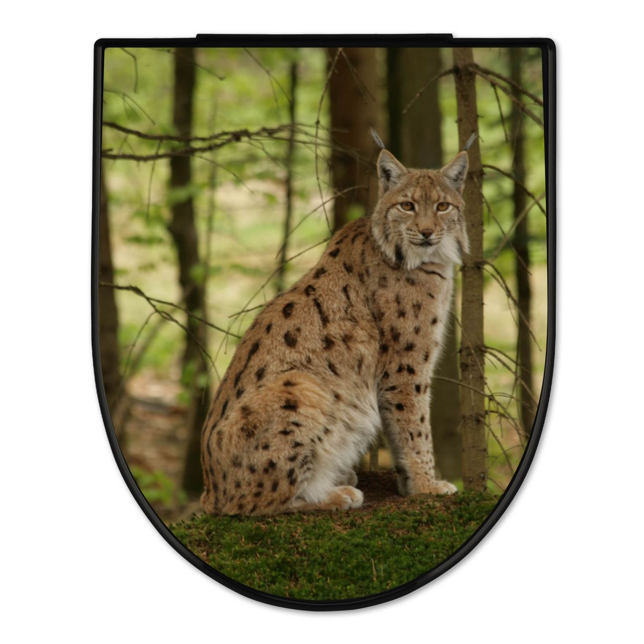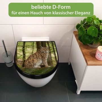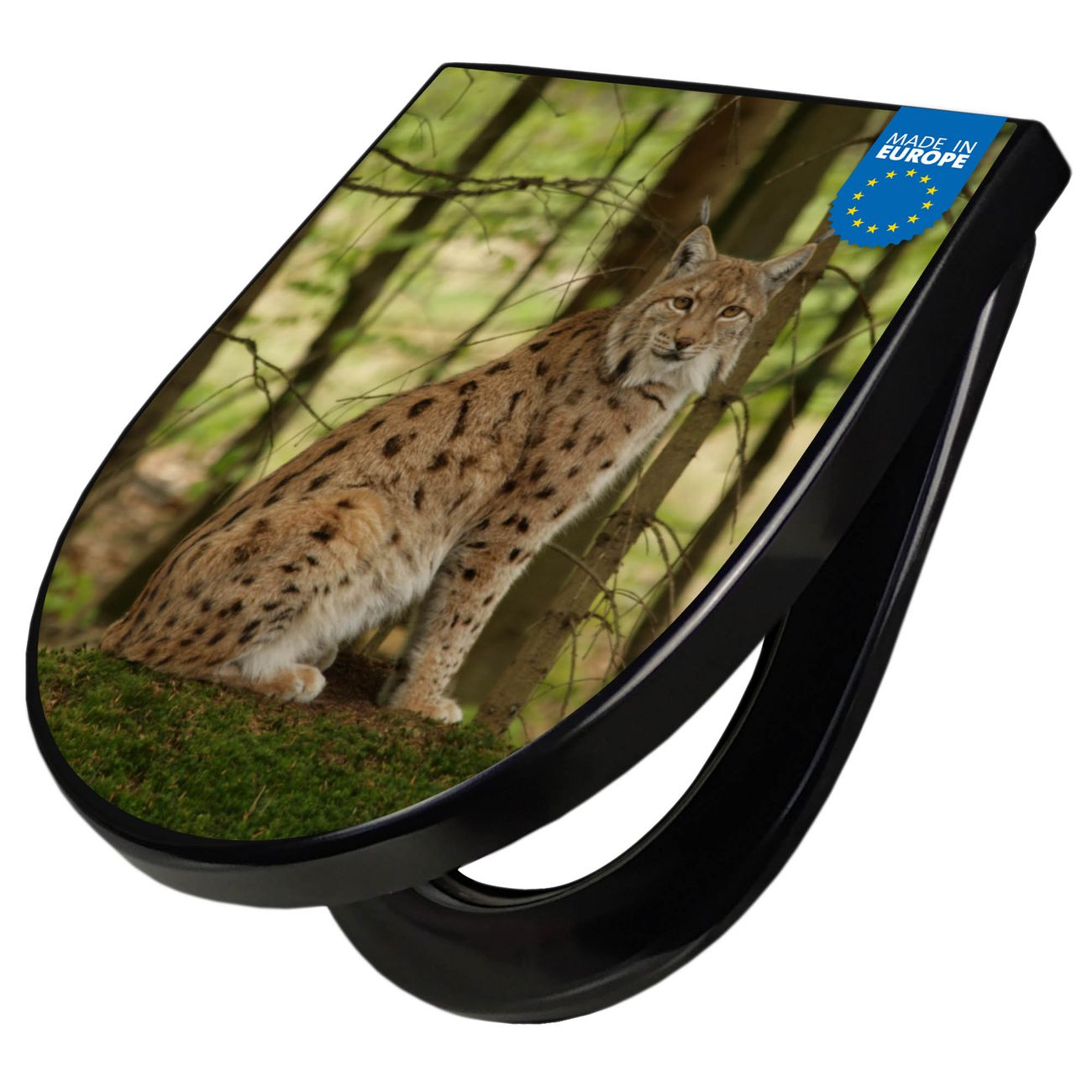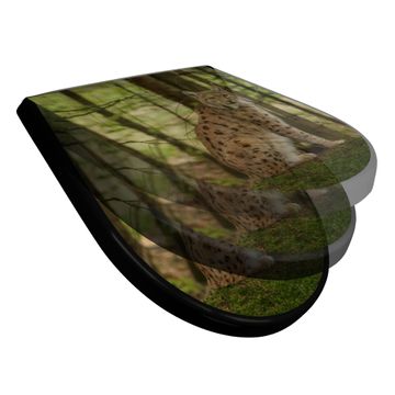 WC Sitz D-Form Schwarz mit Absenkautomatik Motiv Luchs