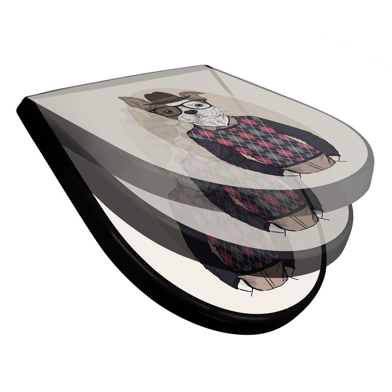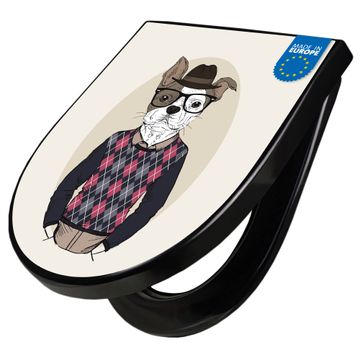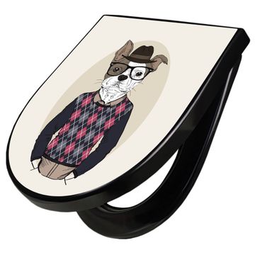 WC Sitz D-Form Schwarz mit Absenkautomatik Motiv Ludger