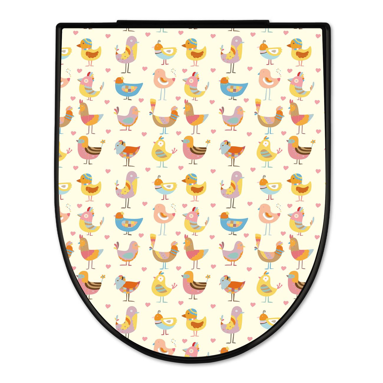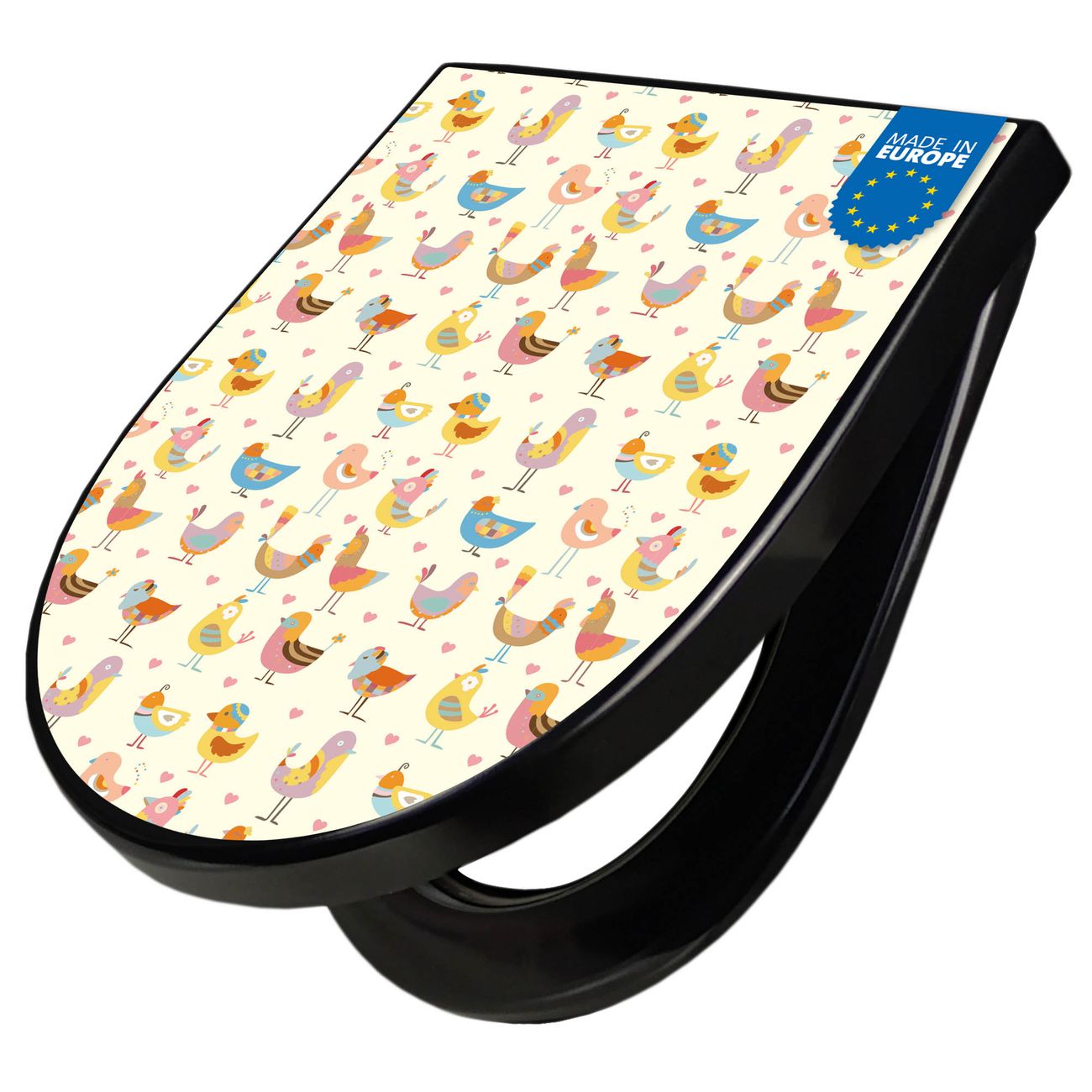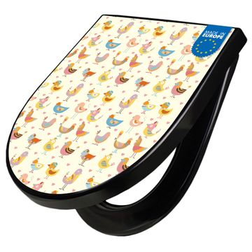 WC Sitz D-Form Schwarz mit Absenkautomatik Motiv Lustige Vögel