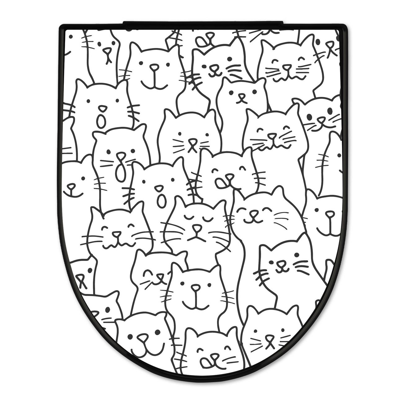 WC Sitz D-Form Schwarz mit Absenkautomatik Motiv Lustiges Katzenmuster